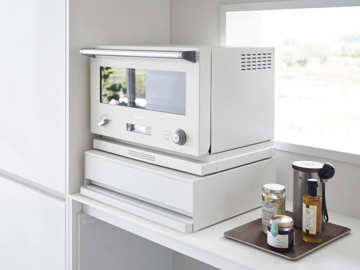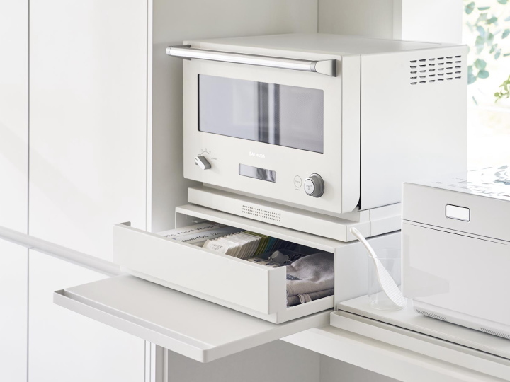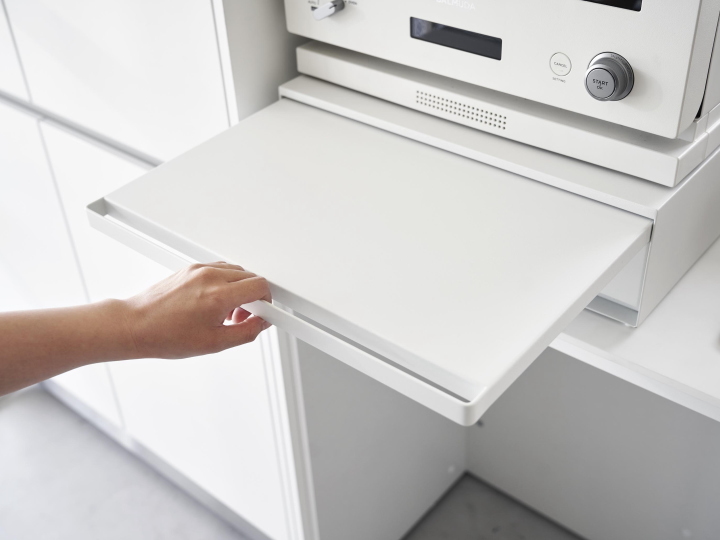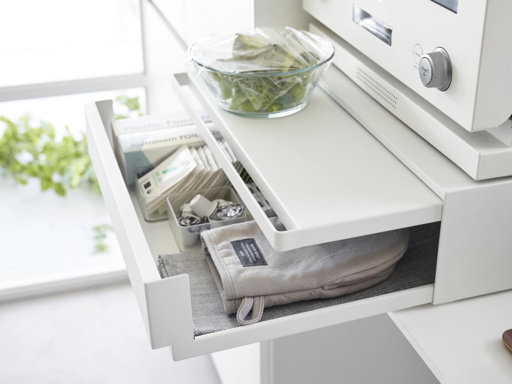 ツーウェイ キッチン家電下引出&スライドテーブル(ホワイト) トースターや炊飯器などのキッチン家電の下に収納できる引き出し収納付きのスライドキッチンテーブル。 スライド式でさっと引き出せる便利アイテムです。 引き出しとテーブル部分は上下入れ替えて使う事が出来ますので、上に乗せる家電に合わせてお好みで設置ができます。 *お届けは「本体」のみです。炊飯器やトースターなど家電類や雑貨は付属しません。 *スライドテーブルと引き出し両方を全開にしたまま手を離さないでください。 それぞれに3kgの物を置いた状態で全開にした場合、天板に7kg以上の物を置いていなければ転倒・落下します。 【サイズ・素材など】 ■幅450×奥行370×高さ135mm 約8.1kg ■天板部分:約幅450×奥行370mm ■スライドテーブル内寸:約幅445×奥行250mm ■引き出し内寸:約幅420×奥行345×高さ90mm ■本体:スチール(粉体塗装) ■組み立て品 ■耐荷重:天板/約17kg、スライドテーブル/約2kg(天板に4kg以上の物を置いた場合) 引き出し耐荷重:約3kg(天板に2kg以上の物を置いた状態) ■熱した鍋ややかんなど置かないでください。製品の変形や変色の原因となります。 【送料・その他】 ■送料無料(沖縄、離島は別途見積り) ■発送まで2.3営業日を頂いております。(土日祝は休業日です) 【その他・必ずご確認下さい。】 *お支払いいただく金額は落札金額+配送料金となります。 *商品の直接取引・送料着払いには対応しておりませんのでご了承ください。 *初期不良や運搬中の破損などは交換対応となります。 *商品が到着しましたら、不良、破損がないかご確認ください。 万一破損等ございましたら、3日以内にご連絡ください。お時間がたちますと、交換等できない場合がございます。 *当店の商品はすべて新品商品です。 *土日祝は休業の為、発送やご連絡ができません。 よろしくお願いします。 |