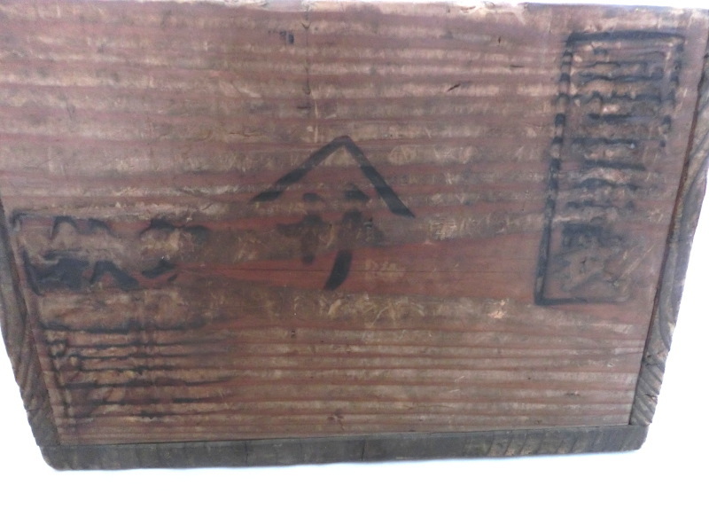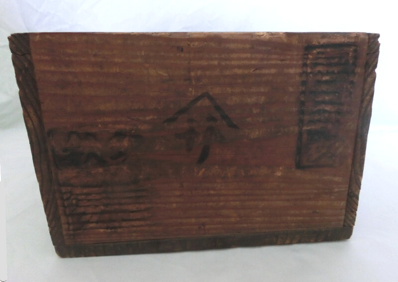 中古のお品となり使い込まれて擦れや汚れ、書き込み 焼き印が押された木箱でいい味わいとなっております。