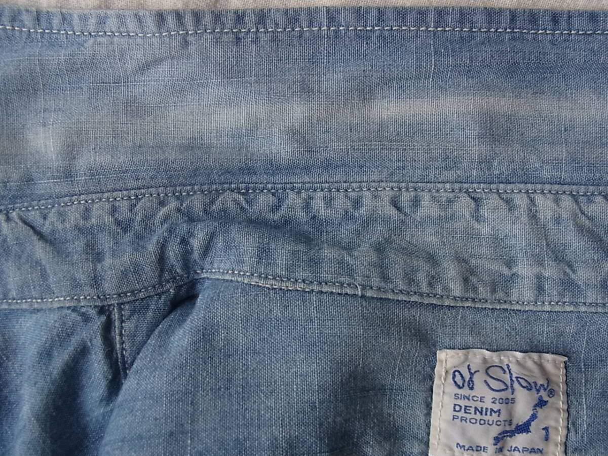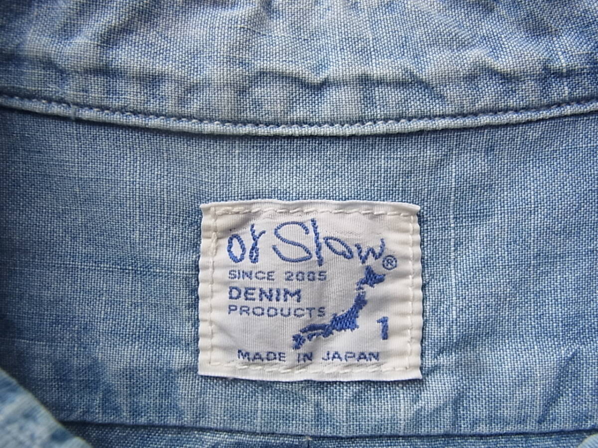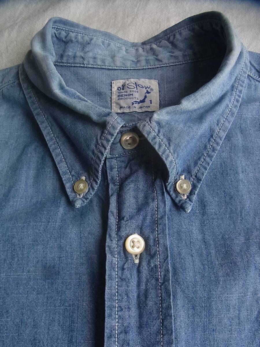 orslow オアスロウ オリジナル インディゴシャンブレー素材 ボタンダウンシャツ サイズ 1  日本製 衿に色褪せ有り