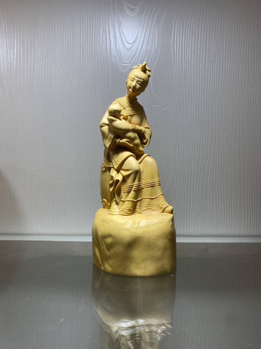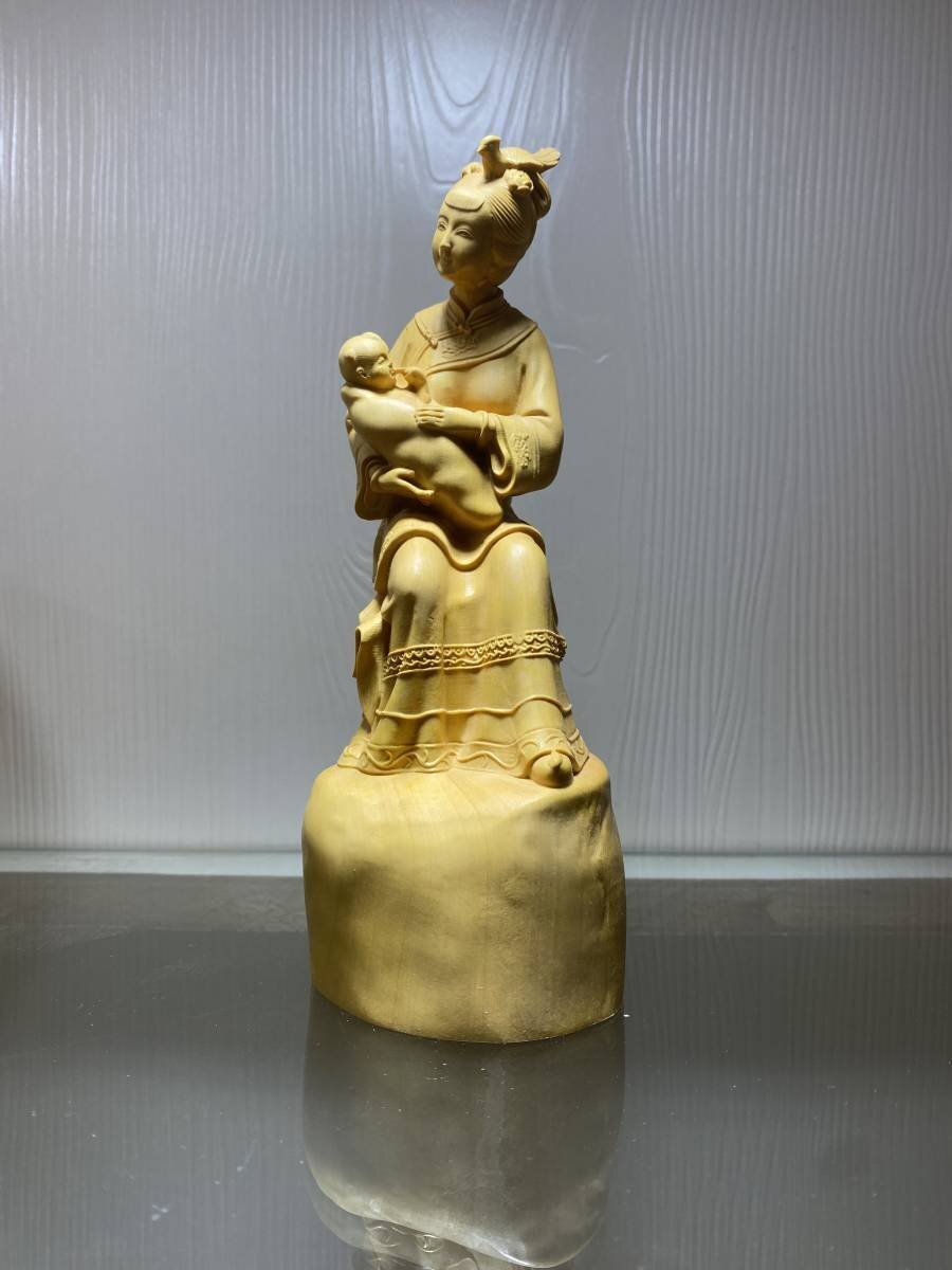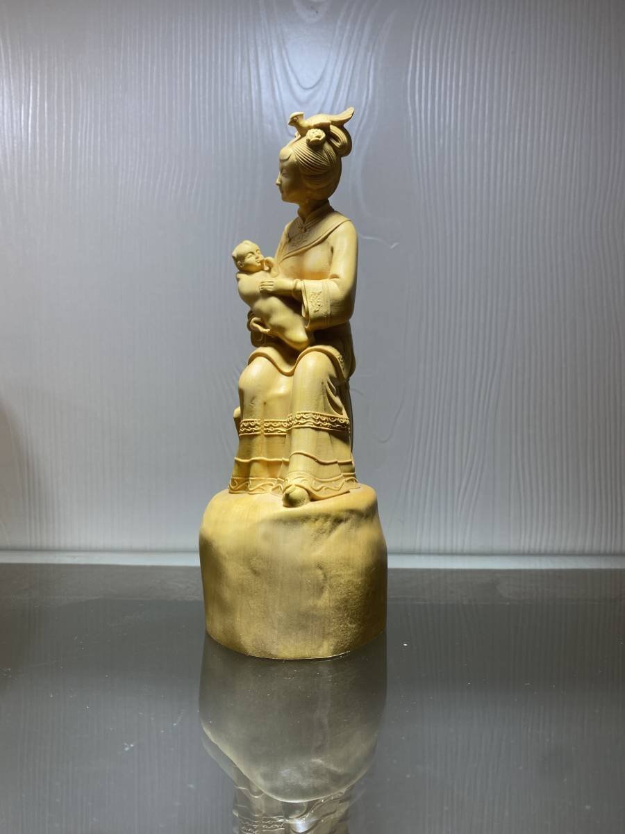 新作 慈母 置物 古美術品 彫刻工芸品 木工細工 手作り 総柘植材 木製 珍品