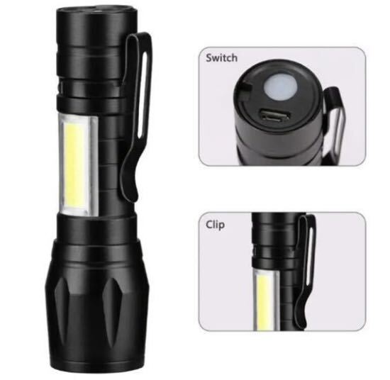 2つのLEDを備えたミニ懐中電灯、強力な充電式バッテリーを備えた懐中電灯、釣りやキャンプ、愛犬のお散歩に最適です。