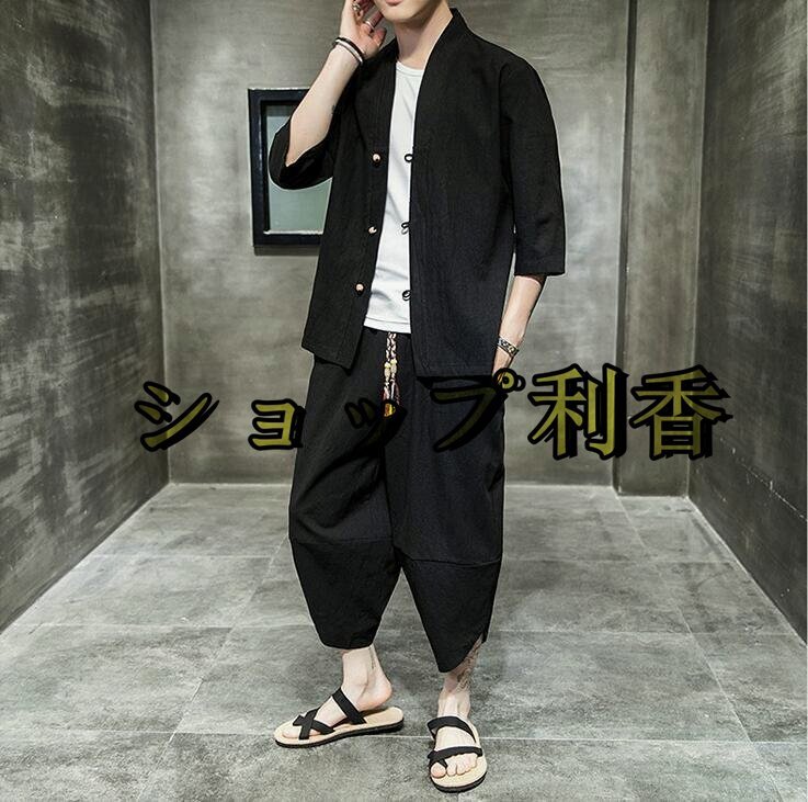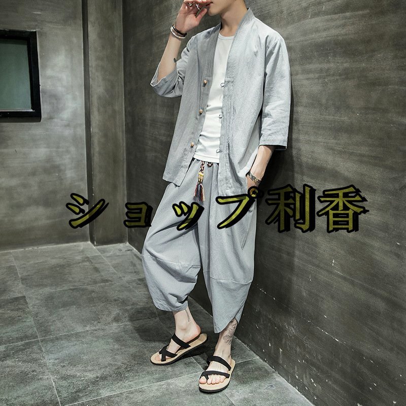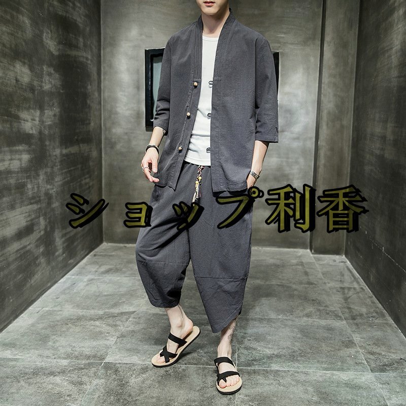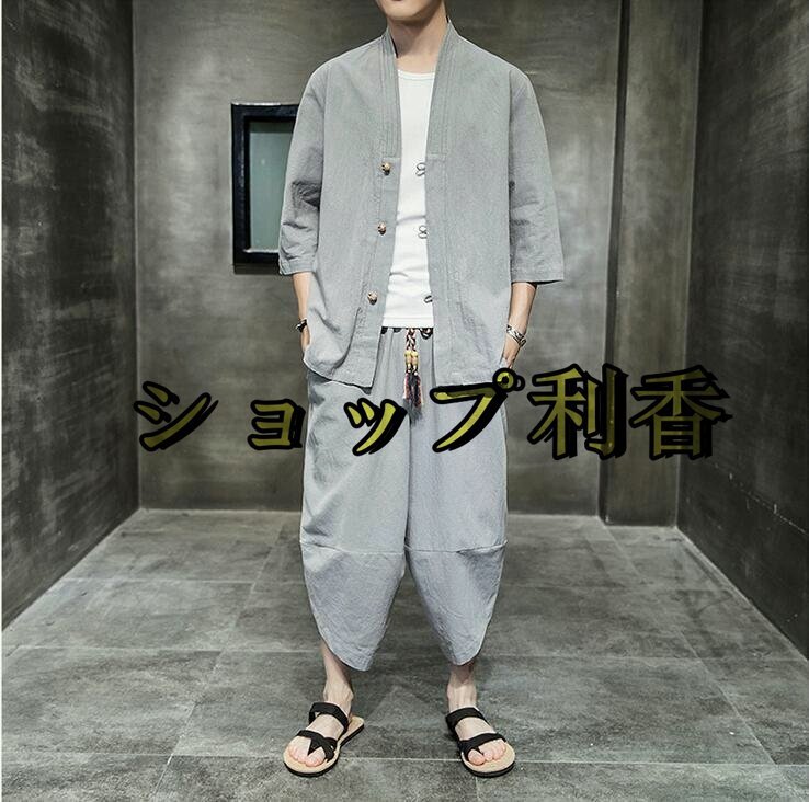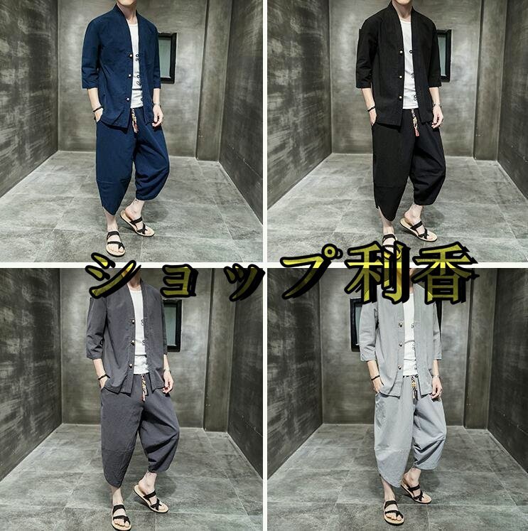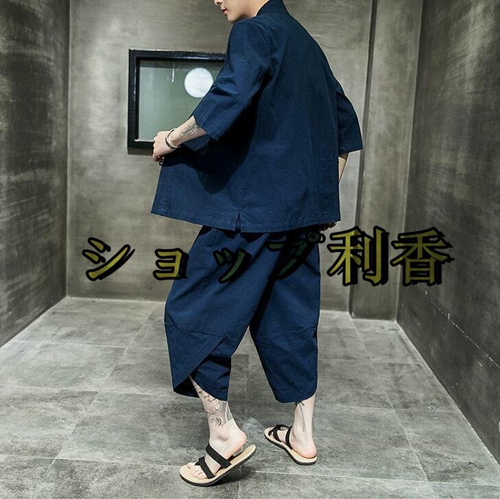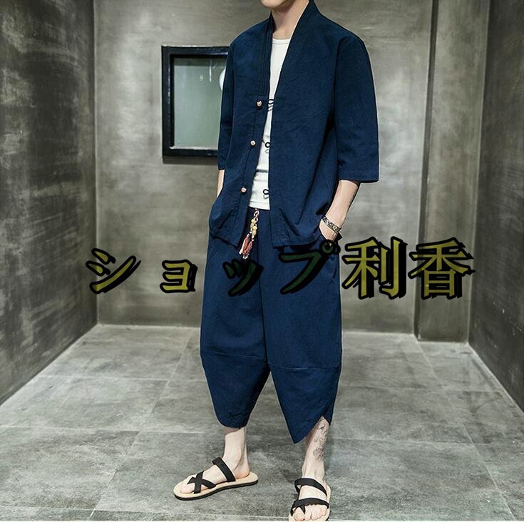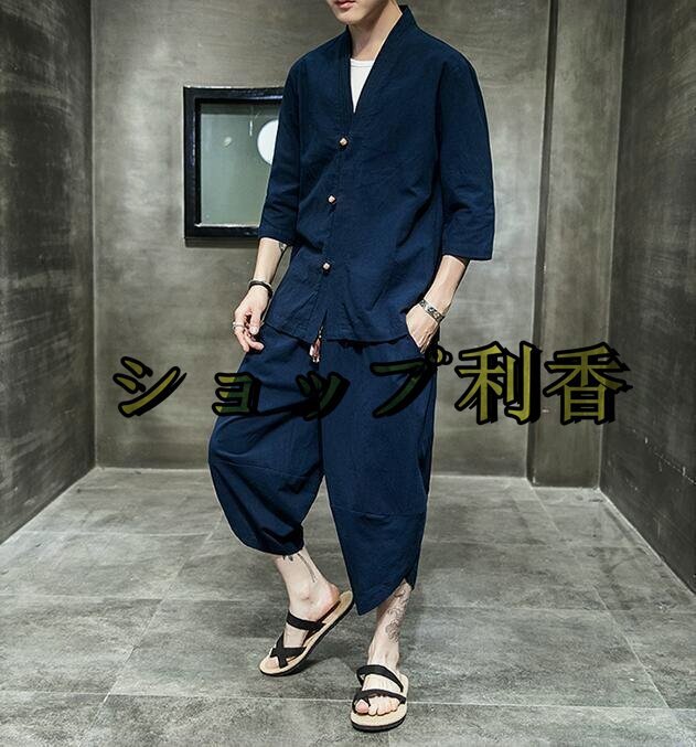 夏新作上質ジャージメンズ 綿麻上下セット 夏服 スウェット トレーナー セットアップ 涼しい 部屋着 運動着 M~5XL ネイビー 選択3XL