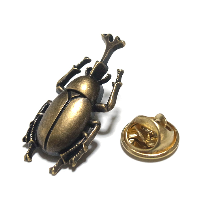 ラペルピン★ピンズ カブトムシ 甲虫 昆虫 夏 アンティーク・ゴールド pin-1433