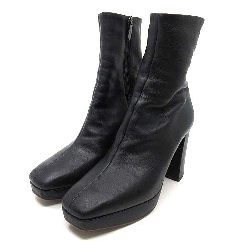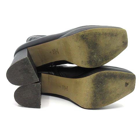 ダイアナ DIANA ストレッチ スムース ショート ブーツ サイドジップ スクエアトゥ チャンキーヒール ブラック 黒 23.5cm U69229