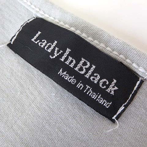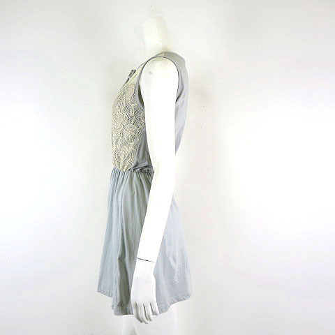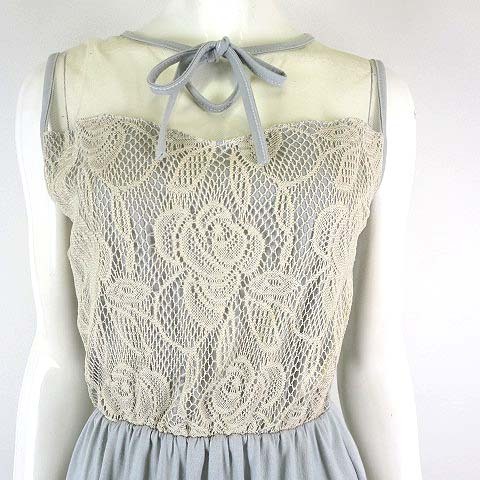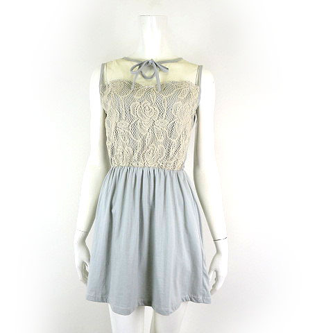 Lady In Black タイ製 ワンピース ミニ チュール レース ペプラム リボン ノースリーブ S くすみブルー アイボリー レディース
