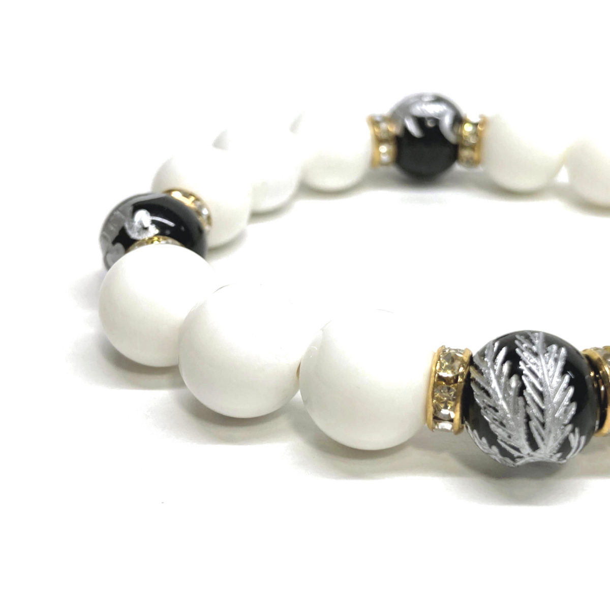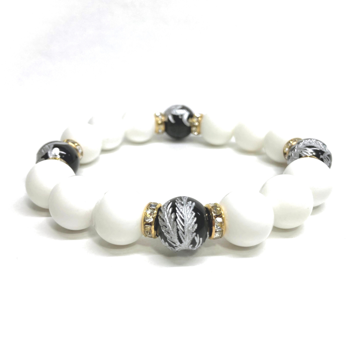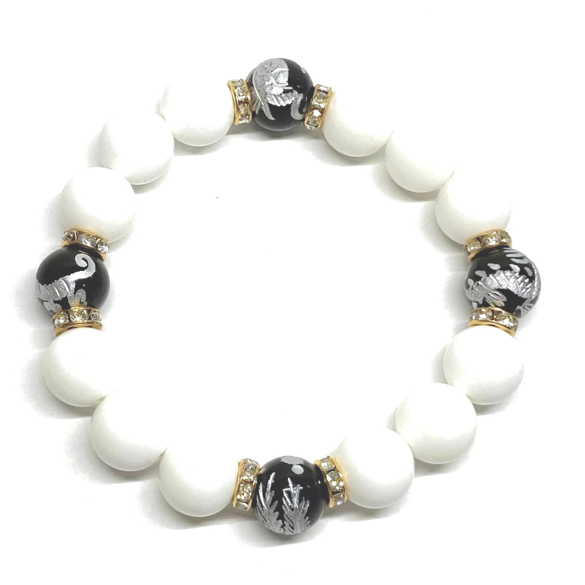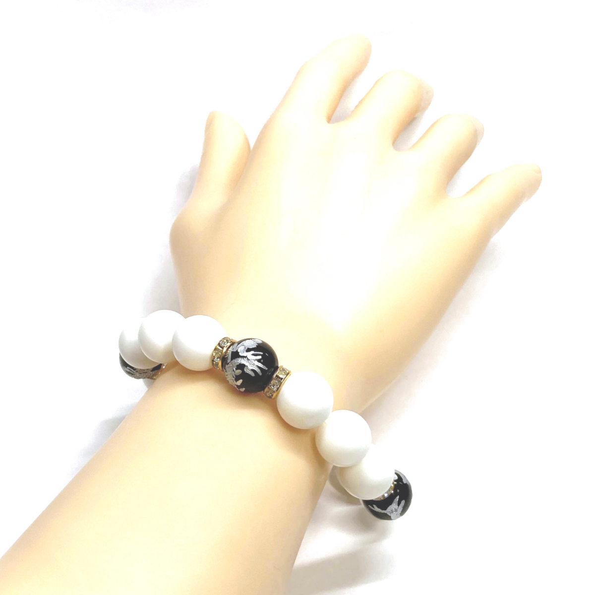 こちらは、四神獣銀彫オニキとホワイトオニキスを組み合わせたパワーストーンブレスレットです。四神獣は、中国の伝説で4つの方向(東西南北)を守護する神聖な神。四神獣、厄災から身を守り、多くの運気を呼び込むと言われております。石大きさは程よくインパクトのある12mm玉で内周 約17cmです。 数に限りがございますので気になる方はお早めにどうぞ。