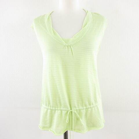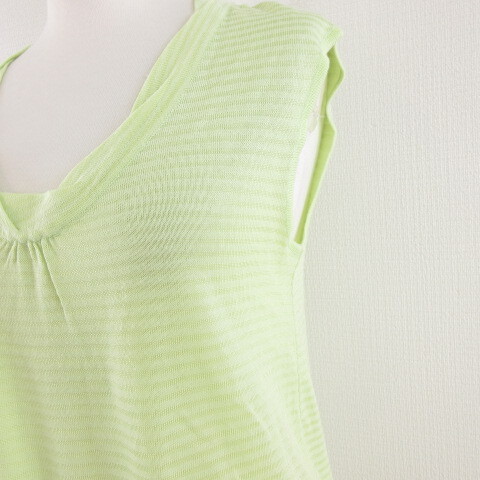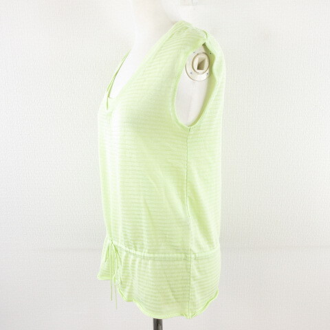 インディヴィ INDIVI ノースリーブニット カットソー ボーダー 黄緑 38 *A874 レディース