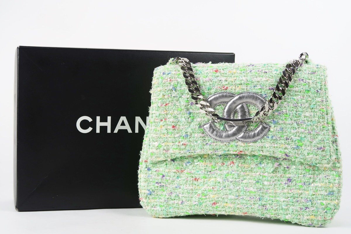 【超美品】CHANEL シャネル ツイード チェーン ハンドバッグ ココマーク グリーン系【QL58】 |