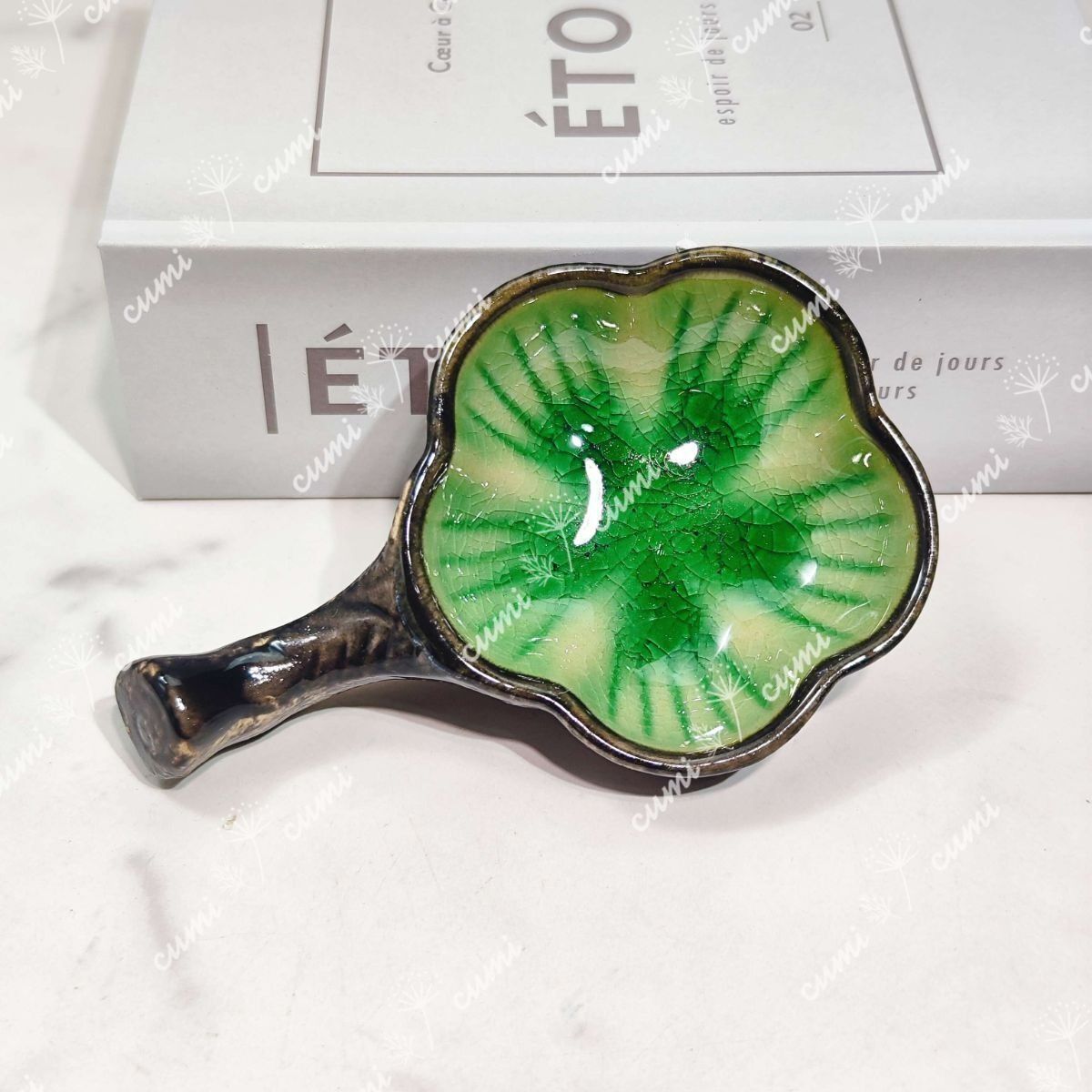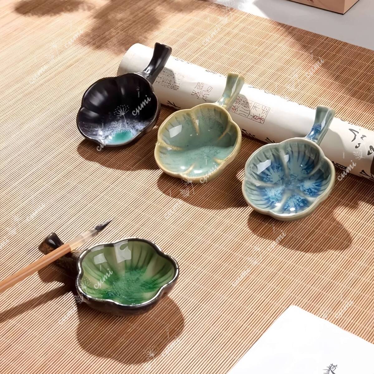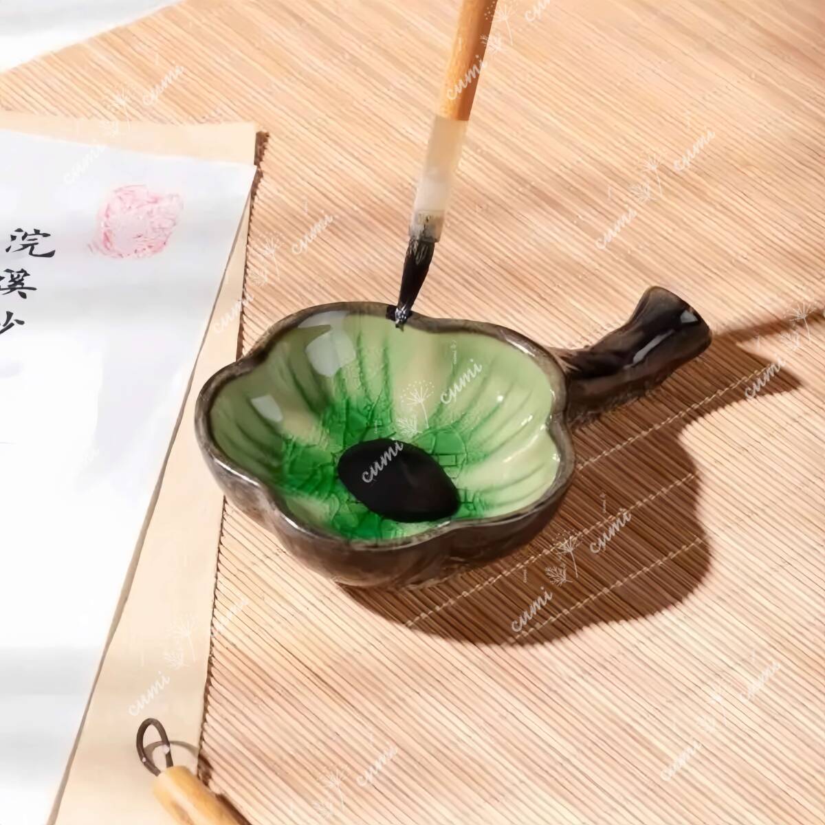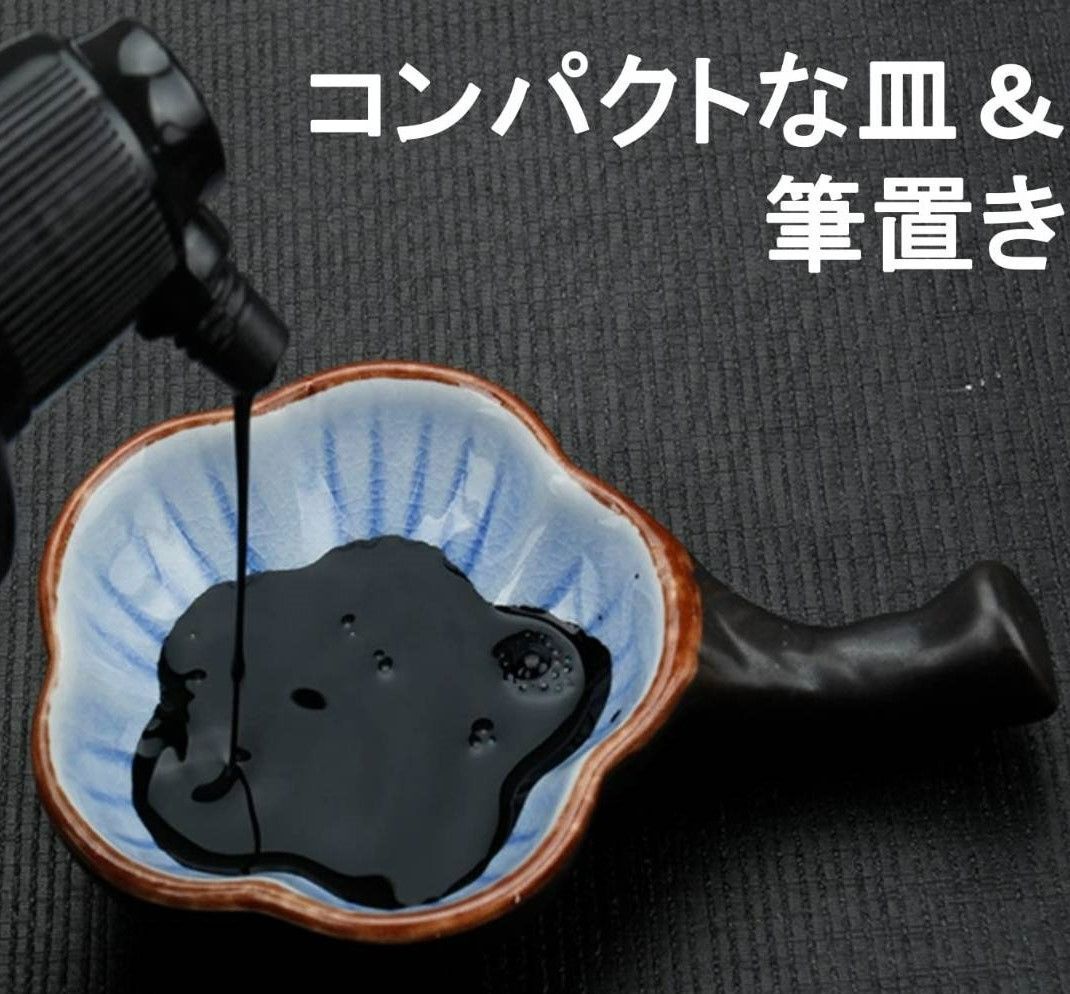 筆置きは筆2本ほど置くことが可能です。また、磁器なので、水洗い可能。