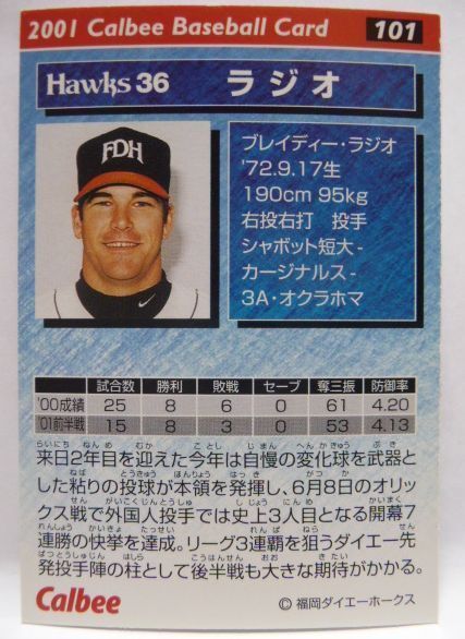 カルビープロ野球カード2001年#101【ラジオ(福岡ダイエー ホークス)】平成13年チップスおまけ食玩トレーディングカード【中古】送料込