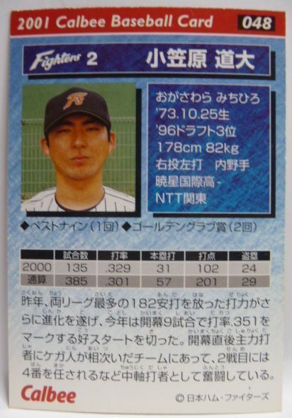 カルビープロ野球カード2001年#048【小笠原 道大(日本ハム ファイターズ)】平成13年チップスおまけ食玩トレーディングカード【中古】送料込