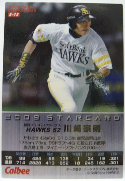 カルビープロ野球カード2009年STARCARD S-12【川崎 宗則(福岡ソフトバンク ホークス)】平成21年チップスおまけ食玩トレーディングカード