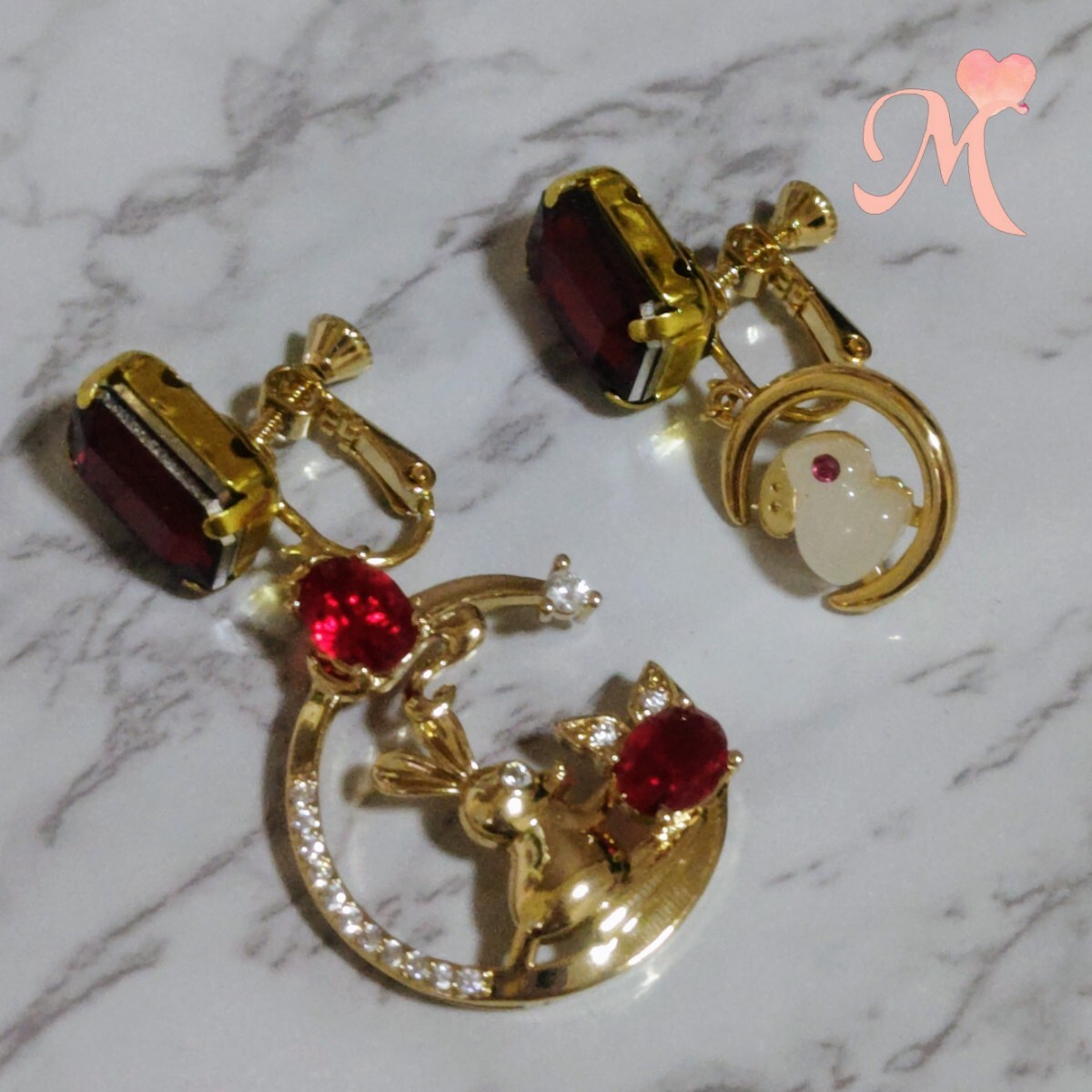 ハンドメイド 金属アレルギー対応ニッケルフリー イヤリング or ステンレス316L 金属アレルギー対応 ピアス うさぎ
