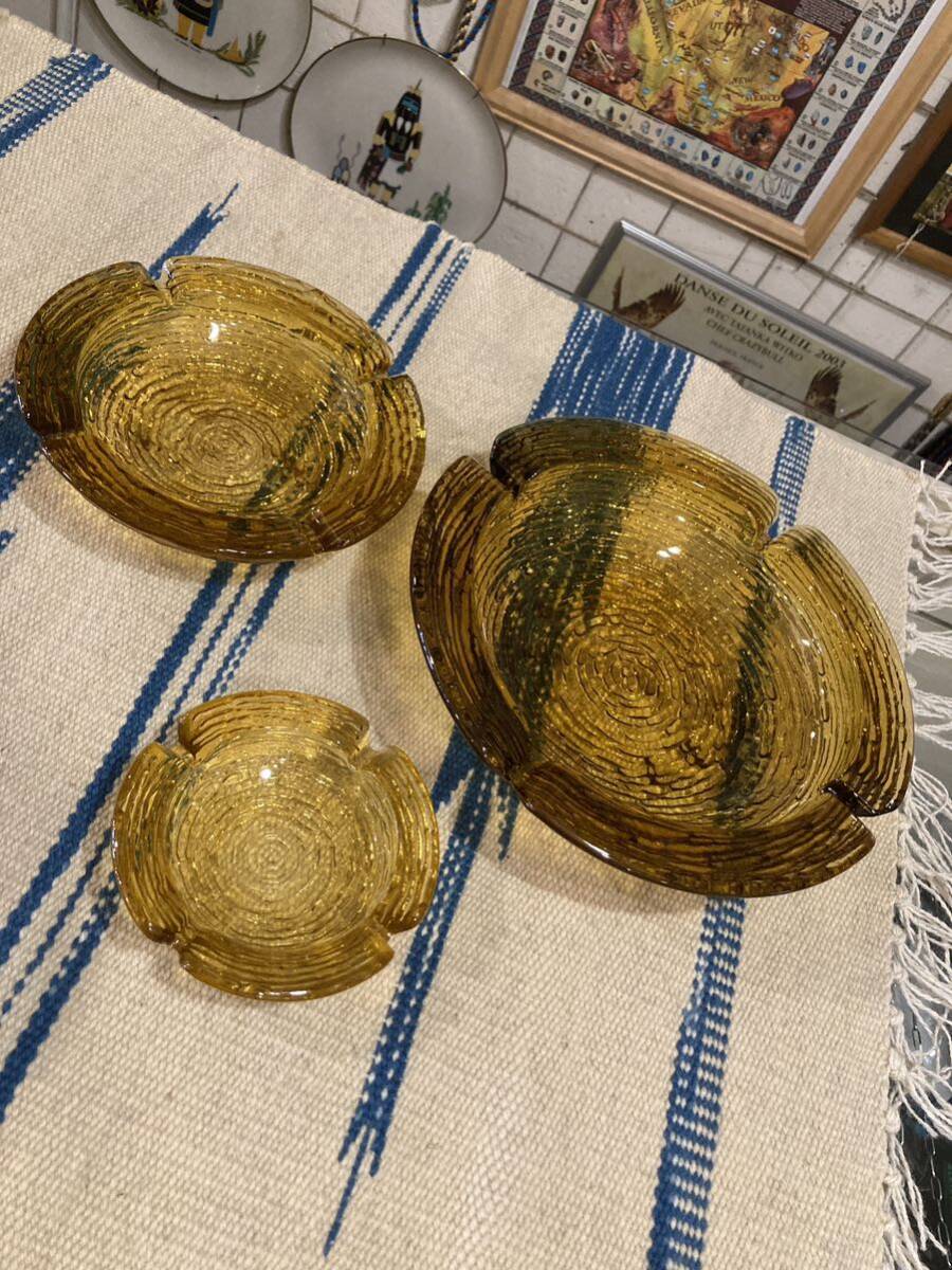 ソレノシリーズのハニーゴールドの灰皿はとても人気が高く、1960年代後半に限定的に作られました。 グリーンに重厚感があるこのデザインが最高です。 灰皿ではなく小物入れとしても最高の逸品です。 【サイズ】 素人採寸で、高さ25mmx直径106mmくらいです。
