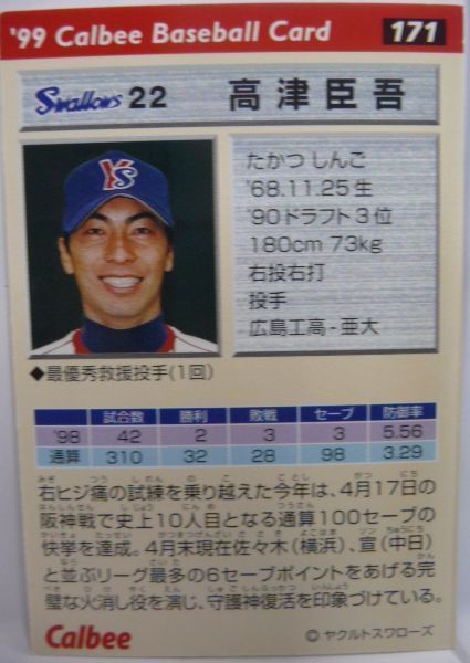 カルビープロ野球カード99年#171【高津 臣吾(ヤクルト スワローズ)】平成11年1999年チップスおまけ食玩トレーディングカード【中古】送料込