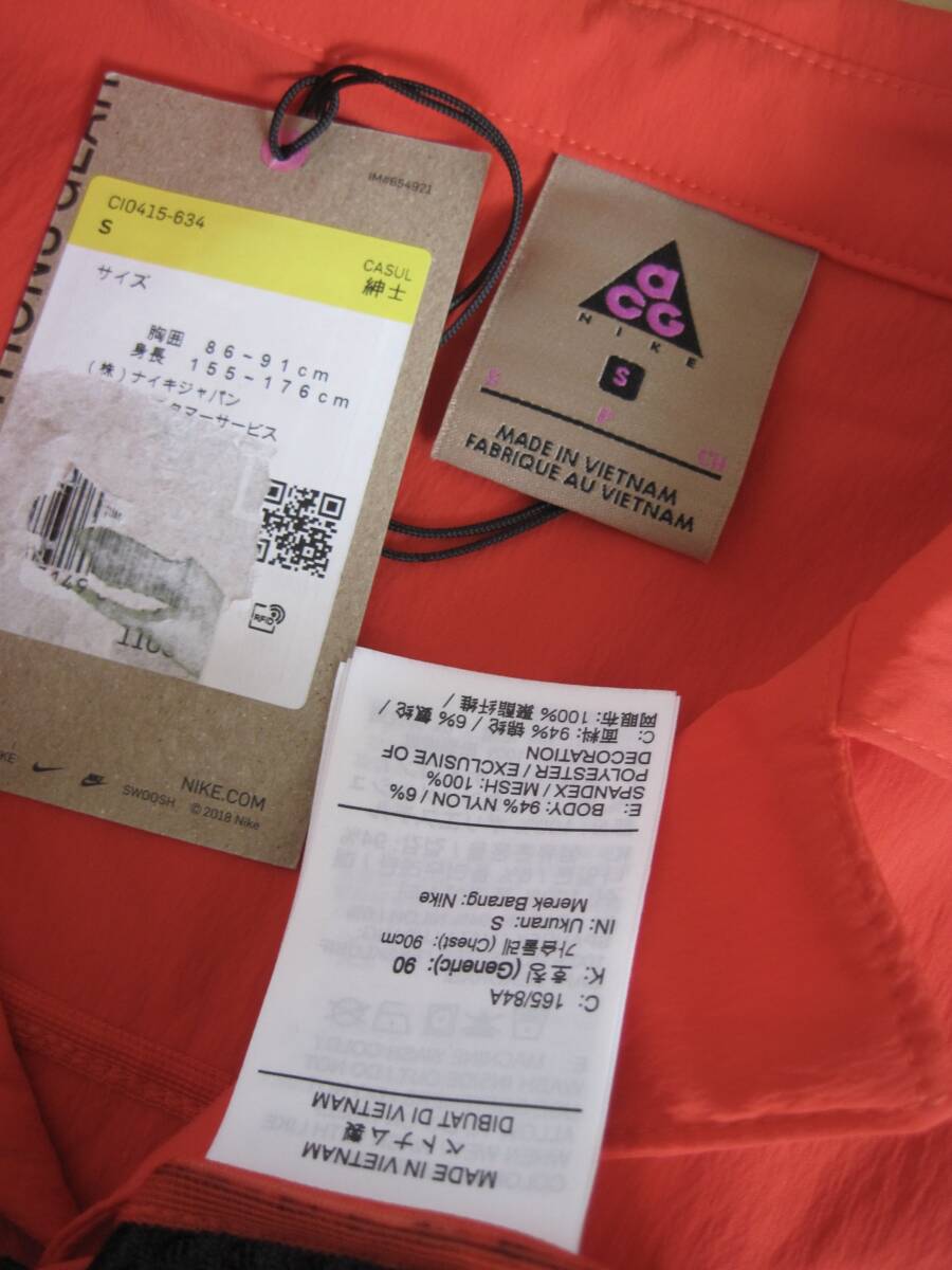 新品 NIKE ナイキ ACG 多機能ポケット ナイロン ビックシルエット半袖シャツになります。新品ですが、個人で保管していたため、完璧なものをお求めな方はよく考えてから入札をしてください。カラーは赤、サイズはS、ナイロン94%、ポリウレタン6です。肩幅49cm、袖丈26.5cm、身幅52cm、着丈68cmです。素人の採寸ですので若干の誤差、商品状態はご了承ください。 落札後は、ノークレーム、ノーリターン、ノーキャンセルでお願いします。 発送方法はレターパックです。ほかにも色々出品していますので良かったらご覧ください。