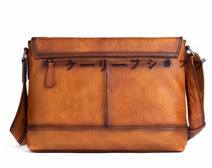 手作りヌメ革 メンズショルダーバッ グ メッセンジャーバック 斜めがけ 肩掛け レザー ビジネスバッグ おしゃれ