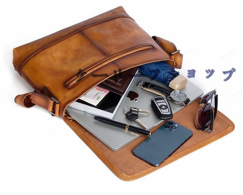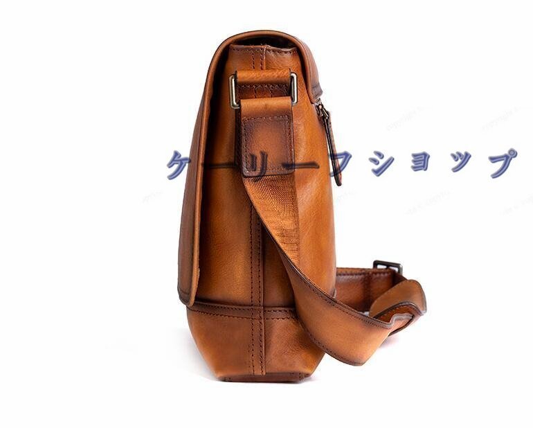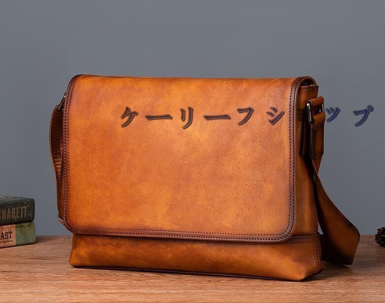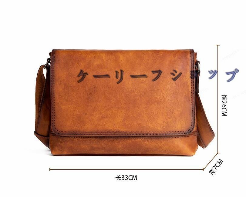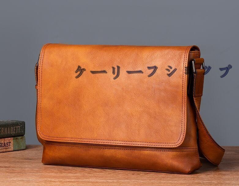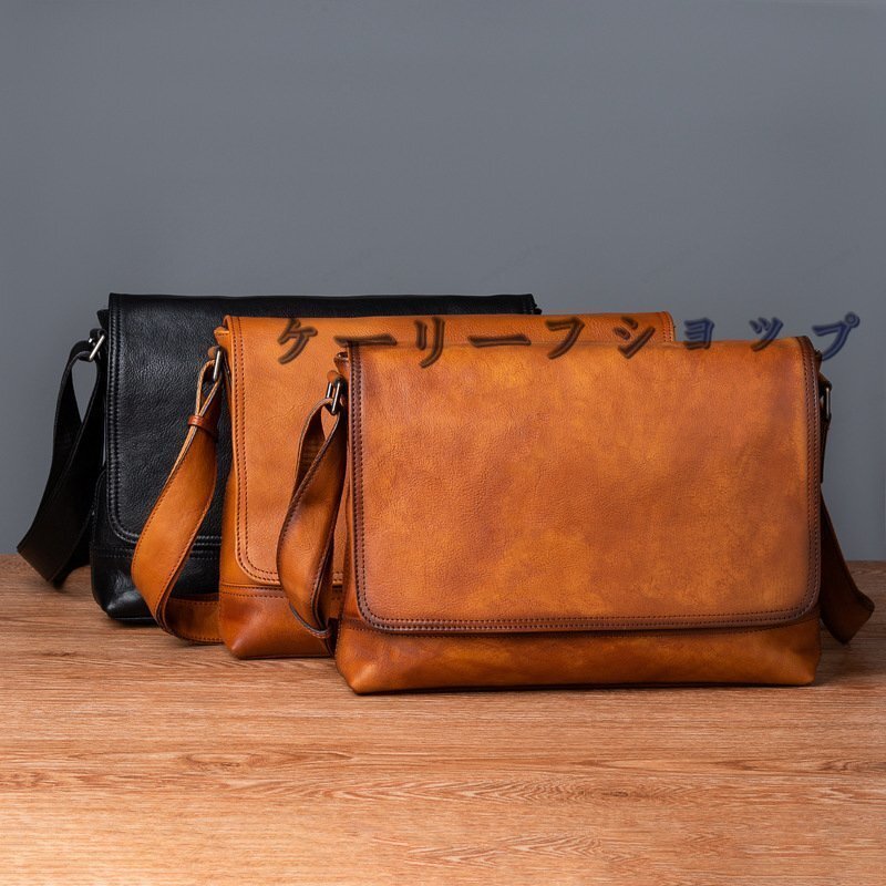 【ケーリーフショップ】手作りヌメ革 メンズショルダーバッ グ メッセンジャーバック 斜めがけ 肩掛け レザー ビジネスバッグ おしゃれ