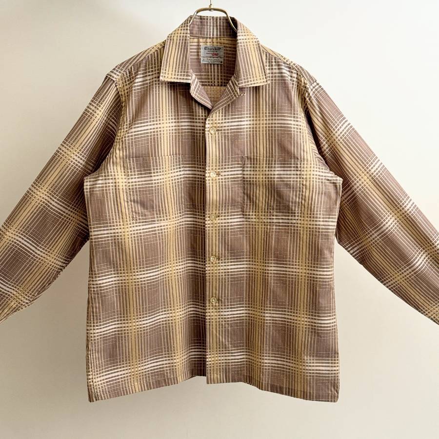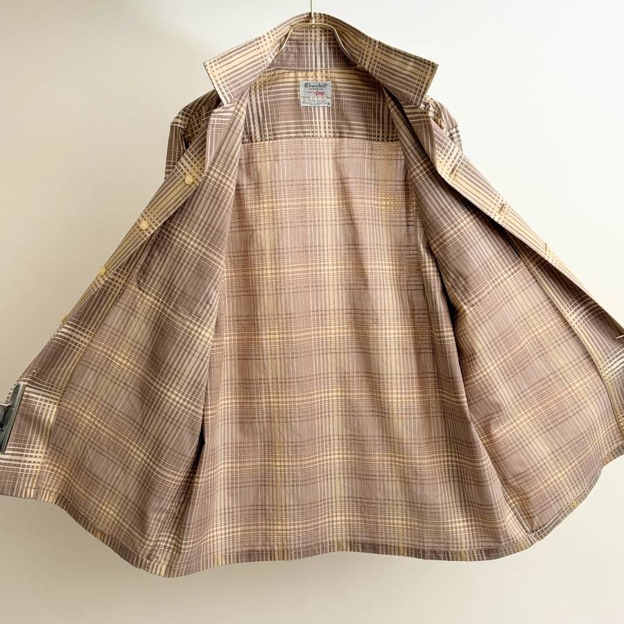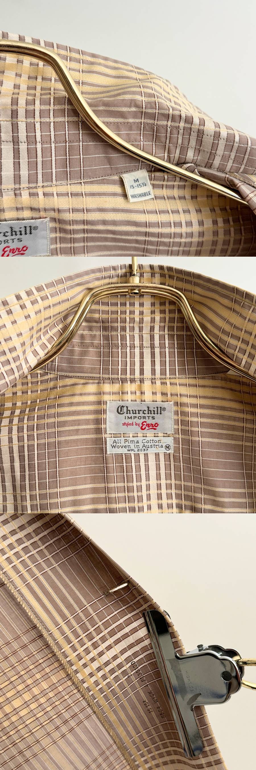 希少《 Dead Stock / 高級生地 》50s 60s デッド【 Churchill ビンテージ オーストリア製 ピマコットン チェックシャツ M アメリカ製 】