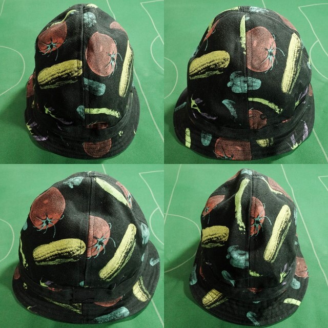 ▲PHATEEファッティー ヘンプ混キャンバス素材 野菜プリント総柄 とんがり帽子 ハット ブラック 美品!!!▲