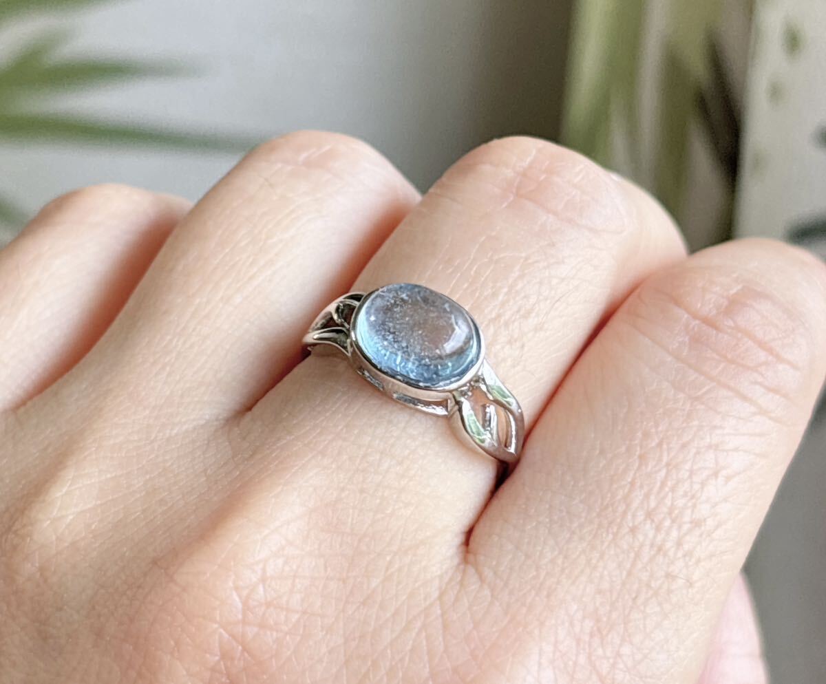 【天然石】モスアクアマリンのリングサイズ:8.2mm*10.5mm*厚さ7.7mm;