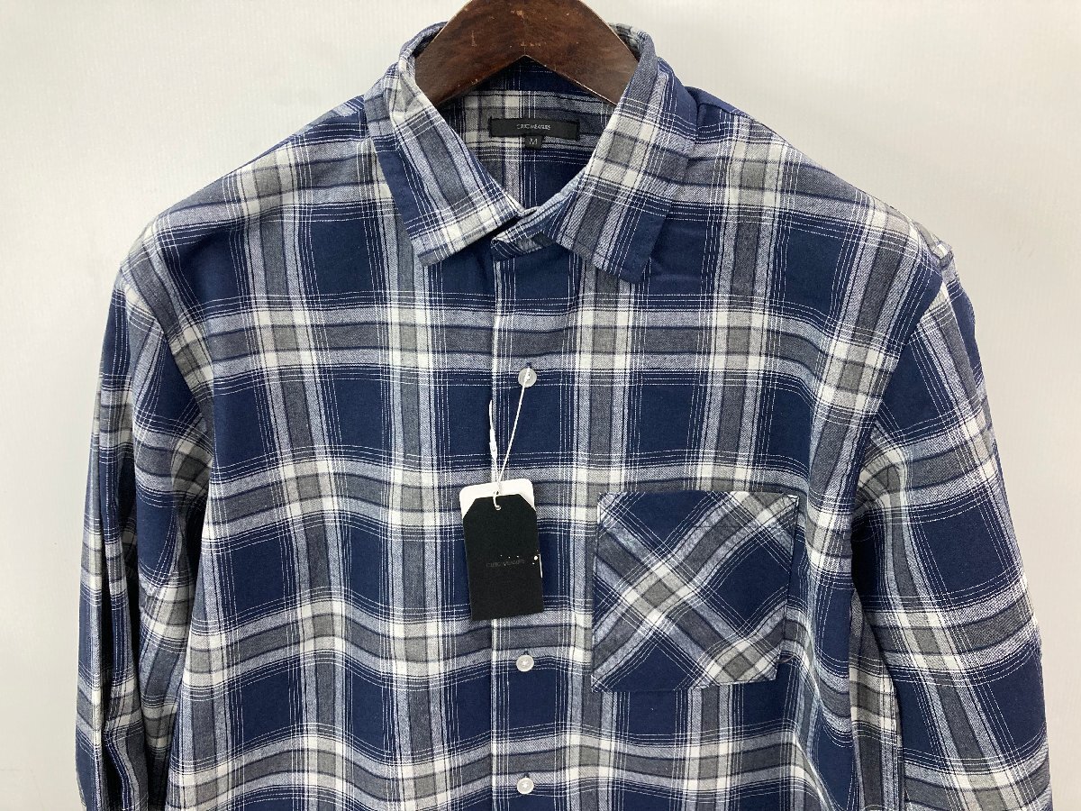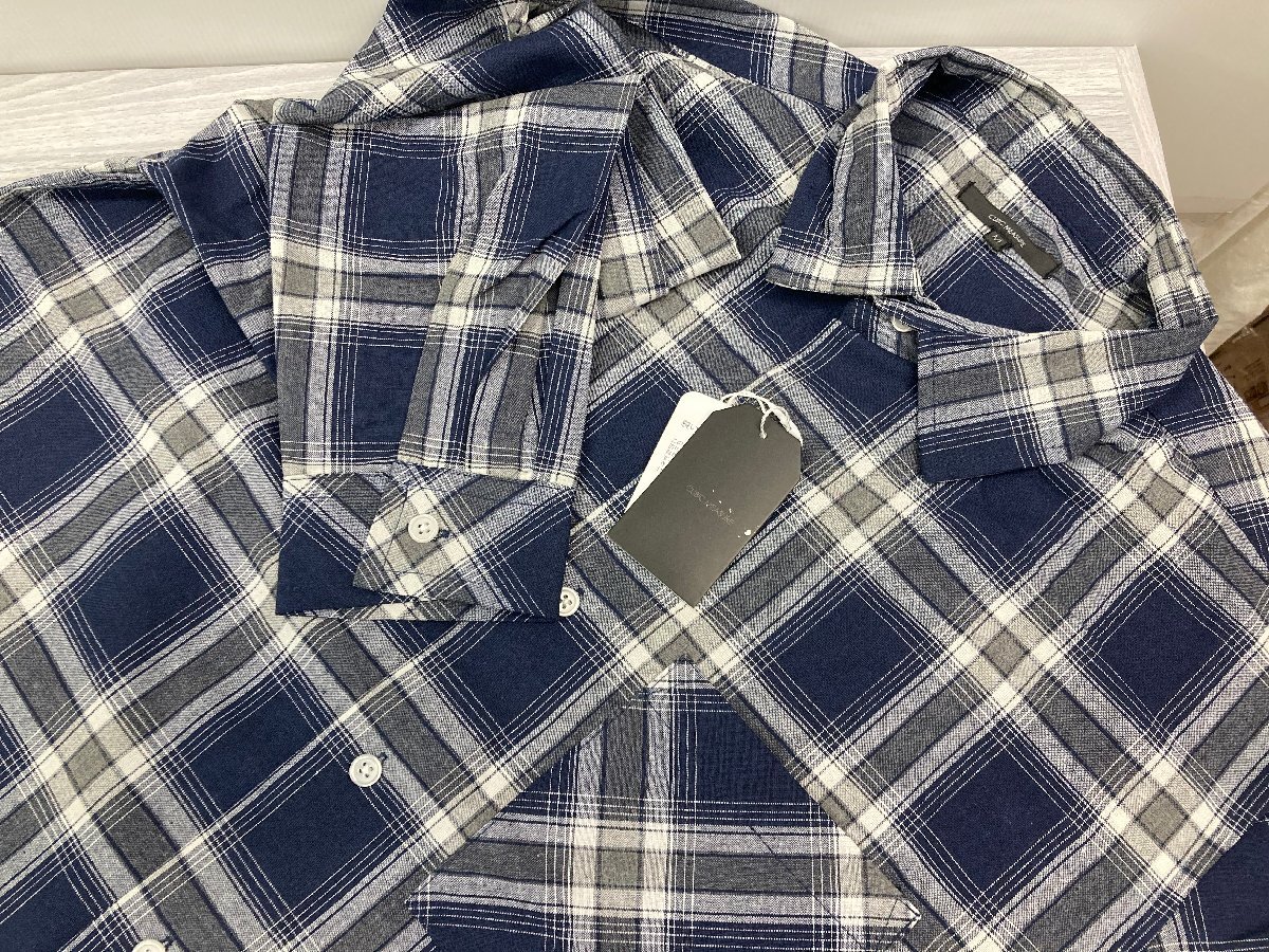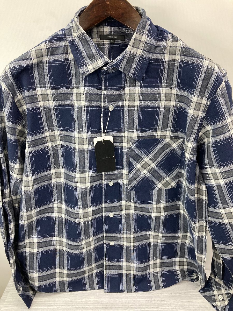 長袖シャツ 大柄チェック 平織綿布 M 紺Xグレイ cubic measure★未使用格安!