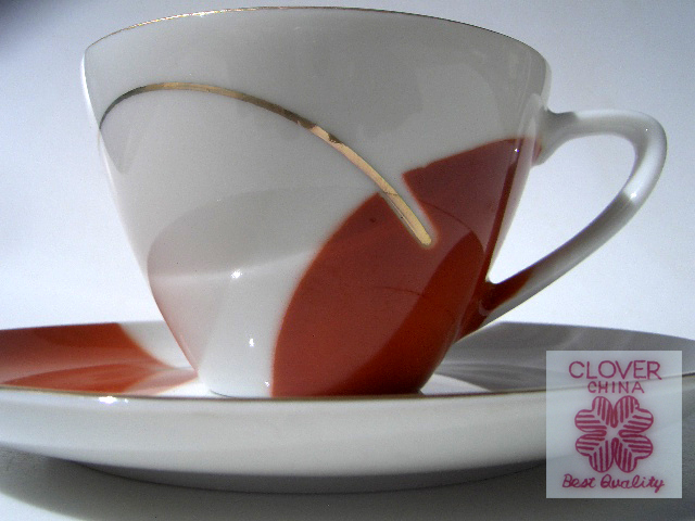 ●1960s! Bone China CLOVER Best Quality 幸運 四つ葉 陶磁器 和洋折衷 クローバー ボーンチャイナ 素敵な C&C ジャパニーズモダン♪未使用