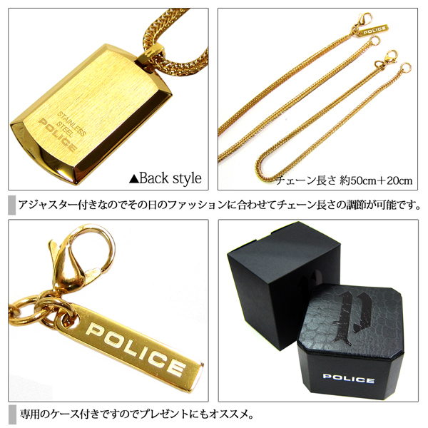 シンプルながらも存在感抜群のプレートペンダント。 クールな印象を持つネックレスで遊び心をプラス。 アジャスター付きなので、その日のファッションに合わせてチェーン長さの調節が可能です。 専用のケース付きですのでプレゼントにもオススメ。 【POLICE】 1983年世界をリードするアイウェアメーカー「デリーゴ社」により発売された「POLICE」 当初アメリカの警察官が1980年代に使用していたサングラスからインスパイアされて誕生した「POLICE」のグッズは様々な発展を遂げ、 サングラスやアクセサリー等と幅広いファッションアイテムをコレクションした、ブランドとして、最も注目度の高いイタリアンブランドです。 デビッド・ベッカム、日本ではEXILEのATSUSHIさんなどPOLICEの愛好者です。 ■素材:ステンレス ■カラー:ゴールド ■サイズ(約):プレート縦3cm×横1.9cm、チェーン長さ(約)50cm+20cmアジャスター付き (実寸につき誤差はあらかじめご了承ください) ■付属品:POLICEオリジナルボックス ■定価12960円 ■新品・未使用 ※ご覧のモニターやブラウザの設定、照明等により、画像と実物の色合いが、若干異なる場合が御座います。 ※ケースなど付属品は予告無く変更する場合が御座います。 ※製造上の過程により商品によっては細かな傷がある場合が御座います。予めご了承の上ご購入下さいませ。 | |