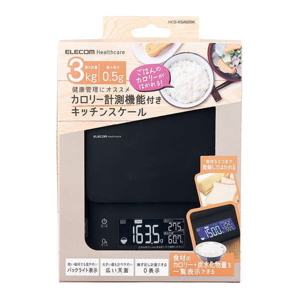 | 製品 | 健康管理にオススメのカロリー計算機能付キッチンスケール |