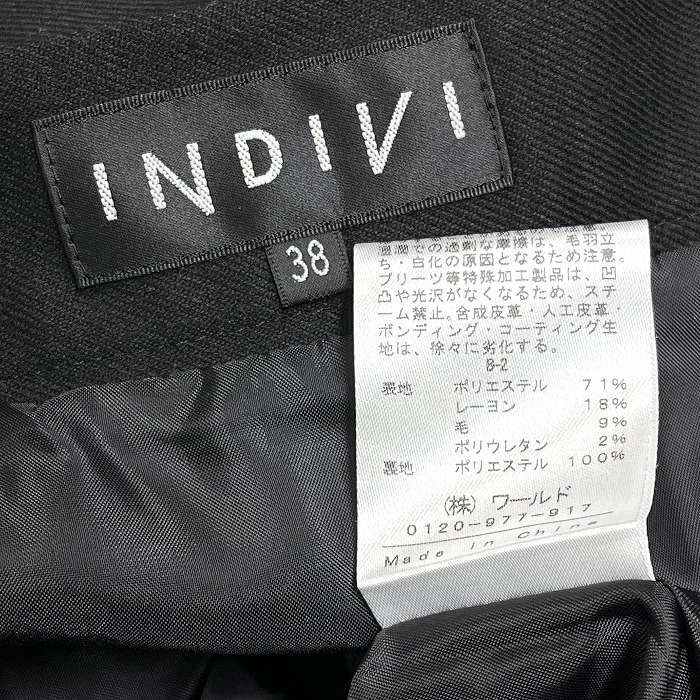 商品タイトル | インディヴィ INDIVI フレアスカート 無地 裏地付き ベルト脱着可 ポリ×レーヨン×毛×ポリウレタン 38 ブラック 黒 レディース |