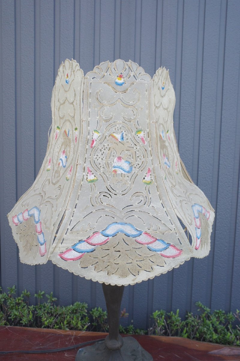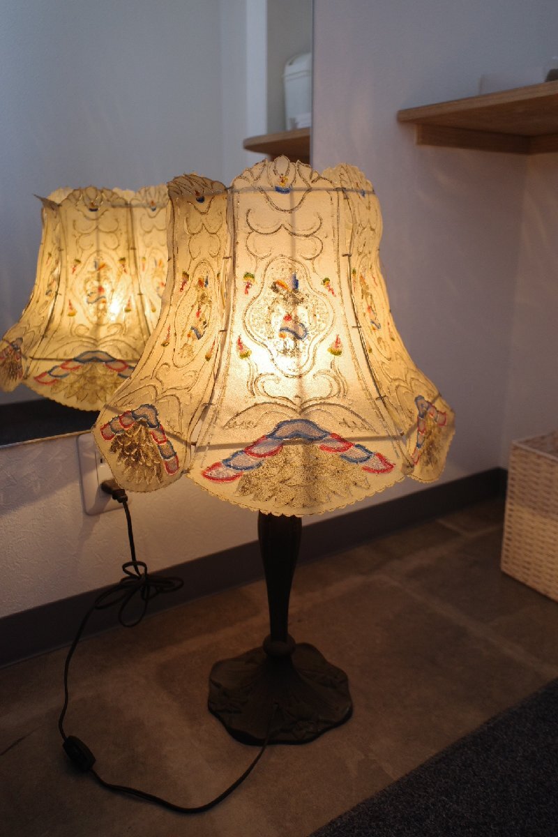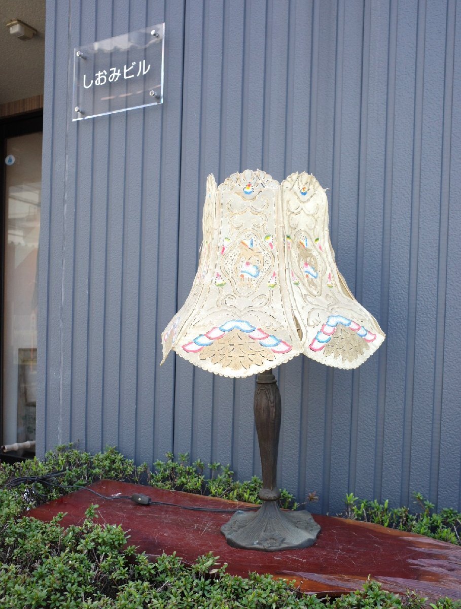 ○ネイティブ風透かし模様 カットレースの傘のスタンドライト 照明 レトロモダン クラシカル ヴィンテージ 古道具のgplus広島 2404i