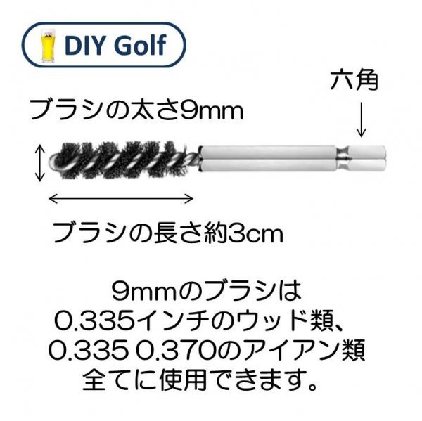 ブラシの太さは9mmで0.335インチのウッド類、0.335 0.370のアイアン類全てに使用できます。