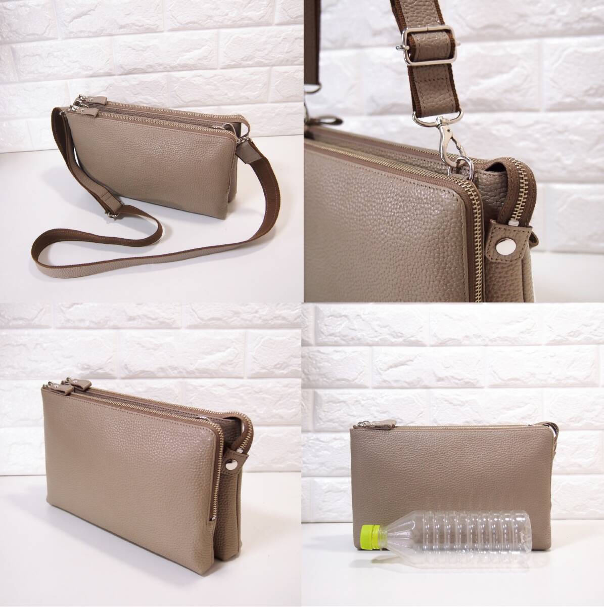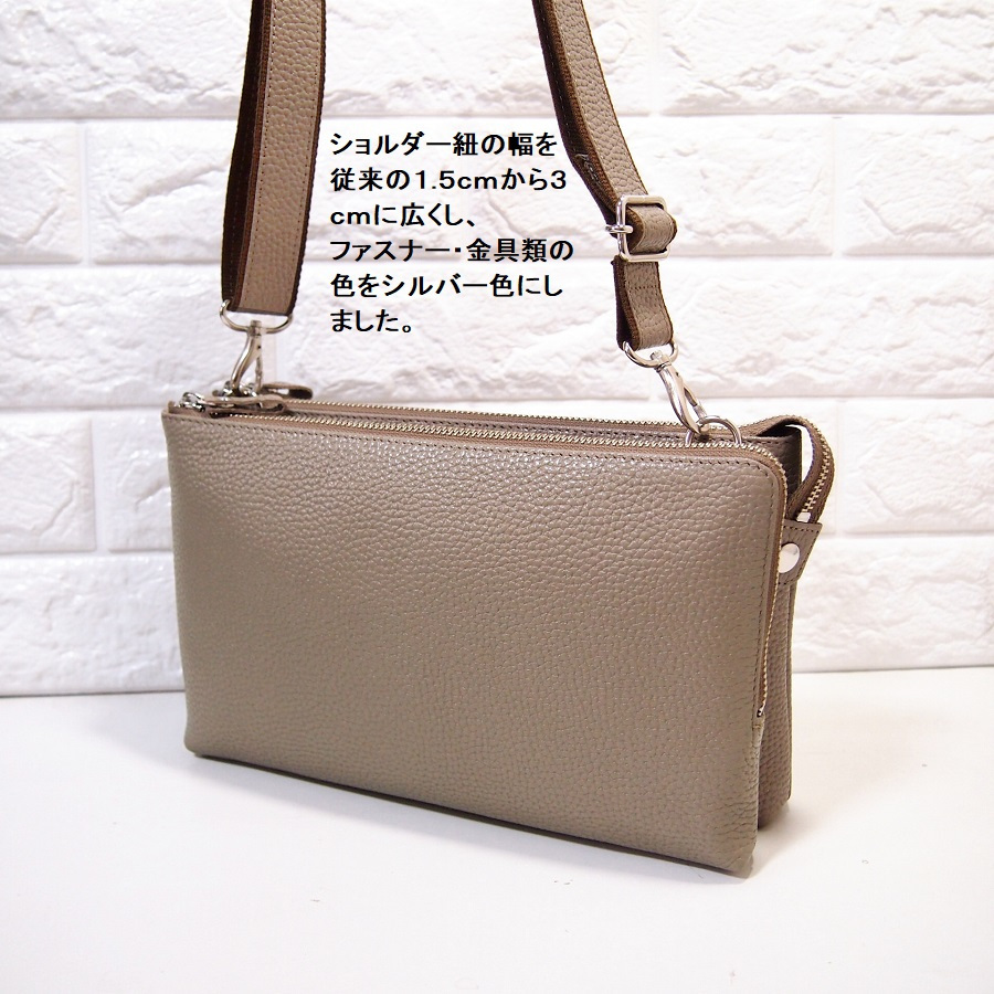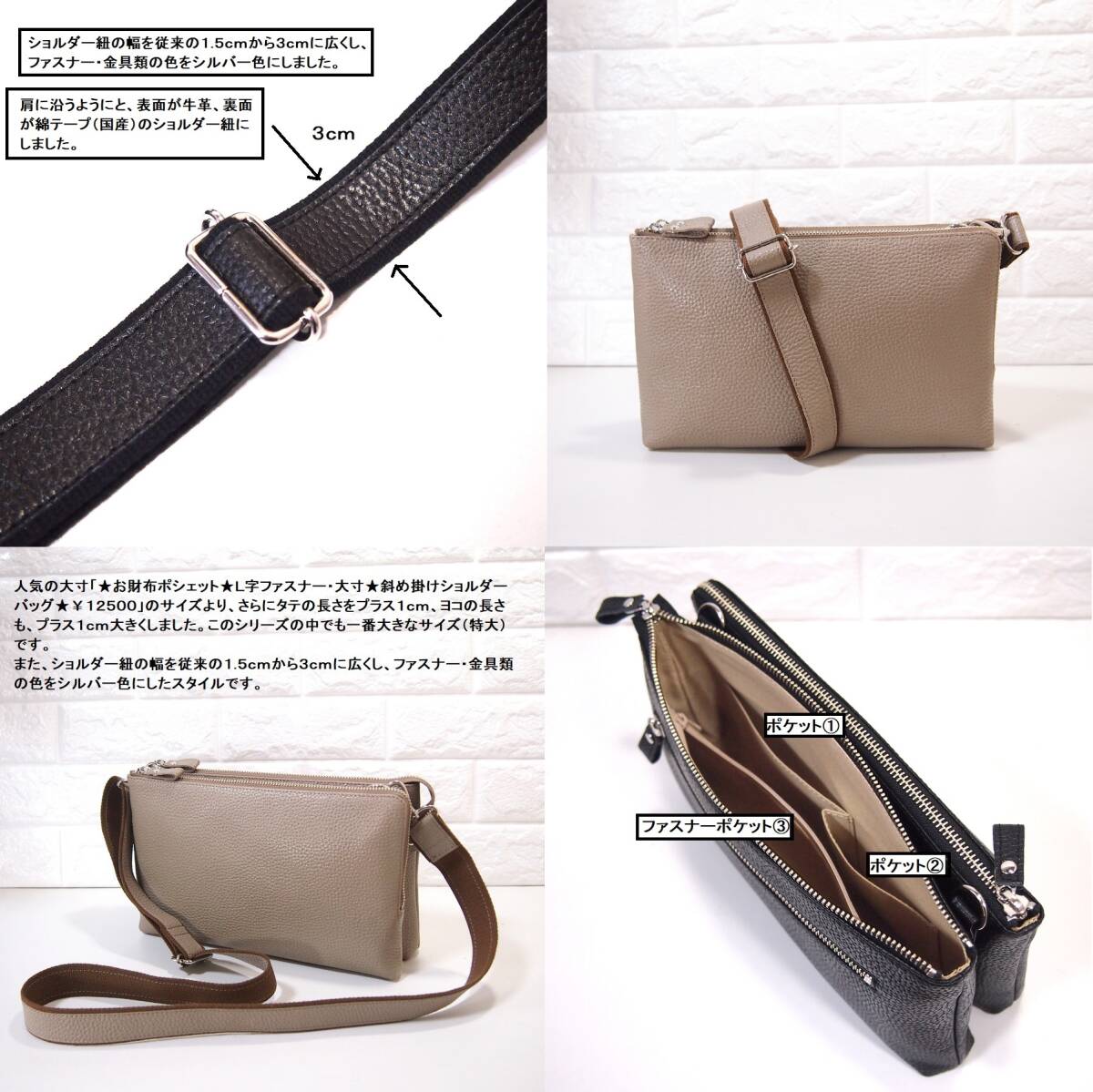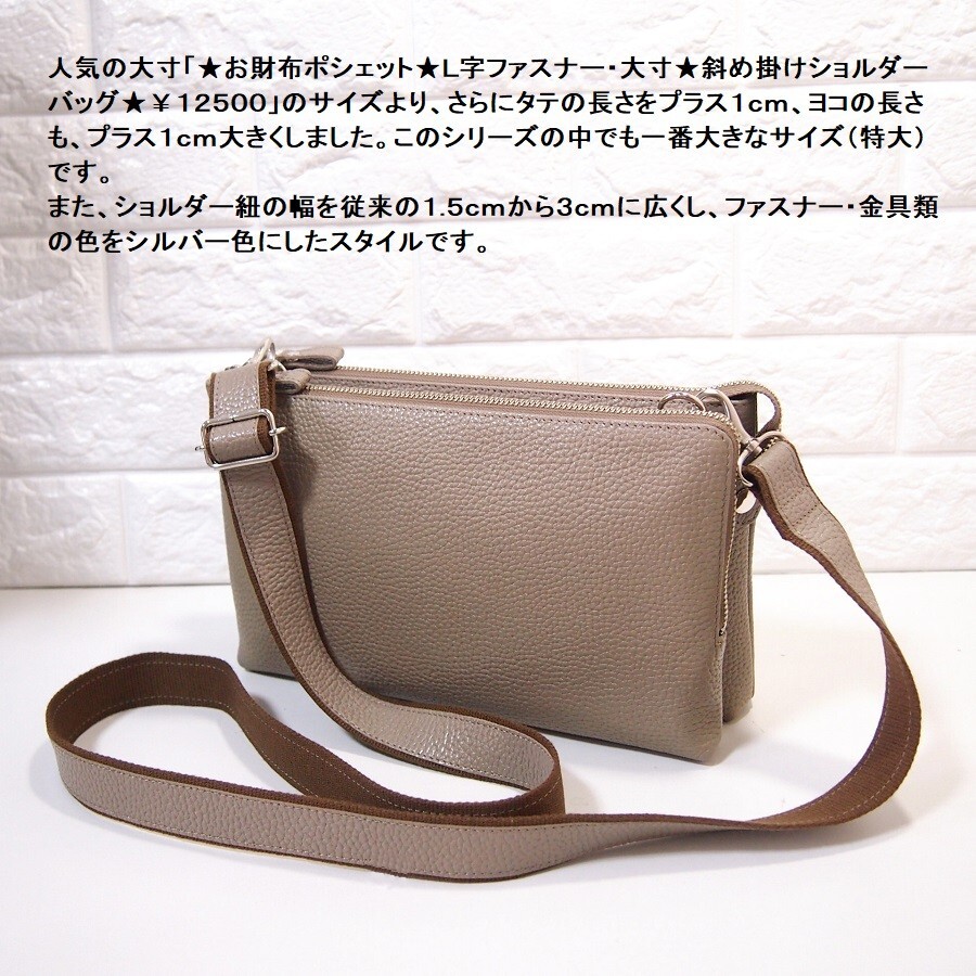 ★新品★日本製★本革★L字ファスナー・特大寸★斜め掛けショルダーバッグ★トープ色★ショルダー幅広3cm★シルバーファスナー★