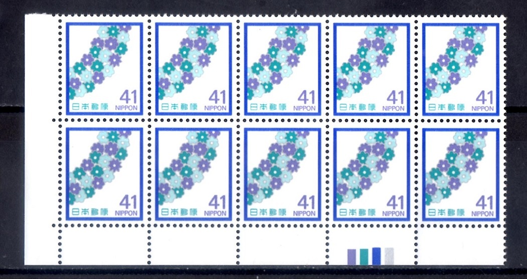 E1327 弔事2次 (花輪)41円 カラーマーク CM下 10BK