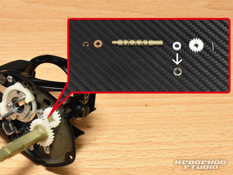 ※こちらのキットでウォームシャフト部分にベアリングを1個追加する事が可能です。