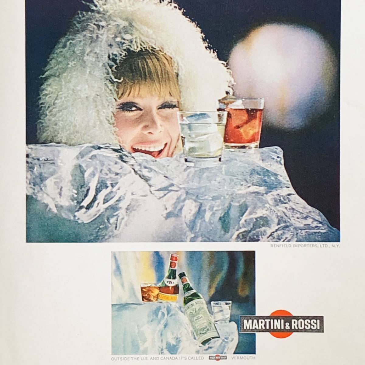 1960年代当時のアメリカの雑誌に掲載されていたマルティーニ・エ・ロッシ    (Martini & Rossi ) 』の広告を額装いたしました。