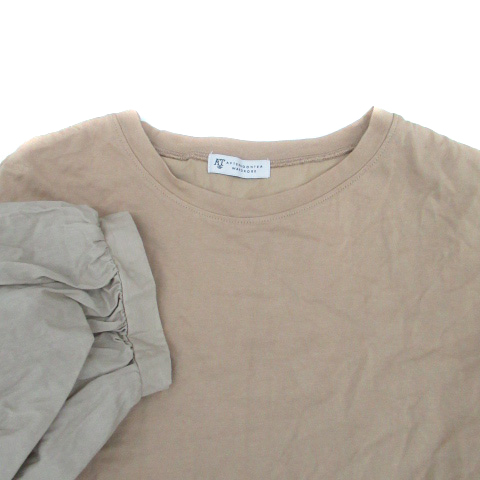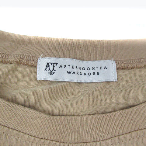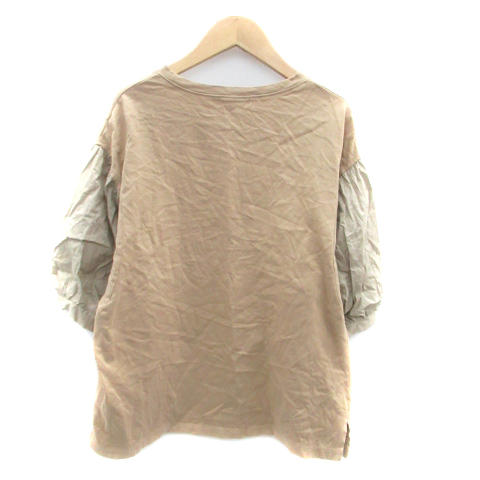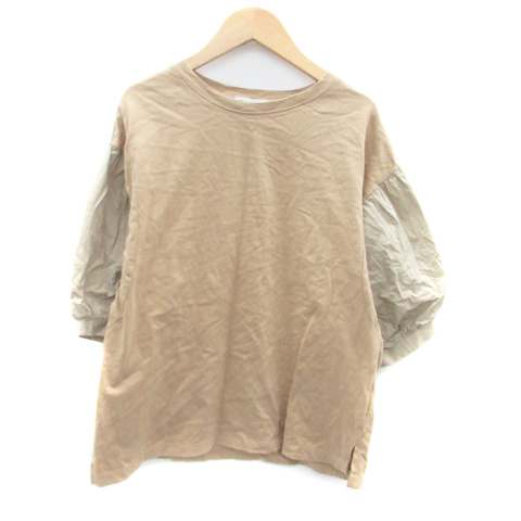 アフタヌーンティー Afternoon Tea カットソー ラウンドネック 五分袖 切替 M?L 茶色 ブラウン /HO3 レディース