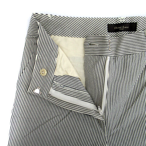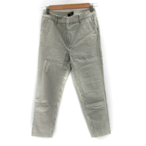 デミルクス ビームス Demi-Luxe BEAMS テーパードパンツ アンクル丈 ストライプ柄 34 白 ホワイト 黒 ブラック /SM9 レディース