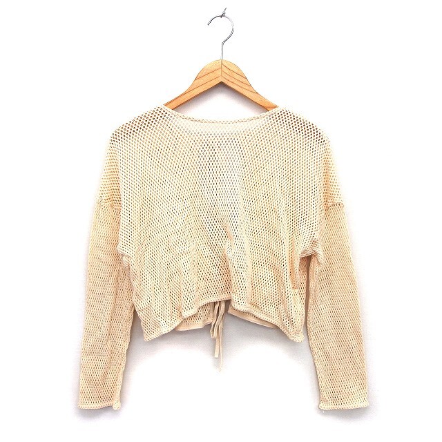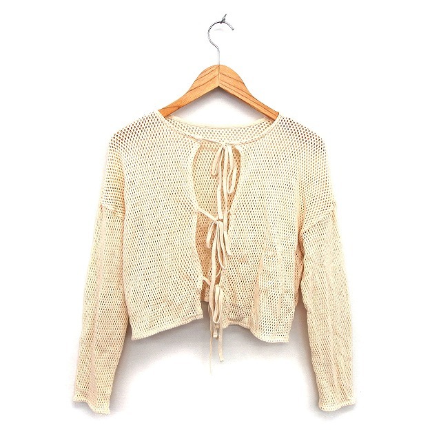 ローリーズファーム LOWRYS FARM カーディガン ニット メッシュ 透かし編み バックリボン ショート 長袖 1 ベージュ /NT27 レディース