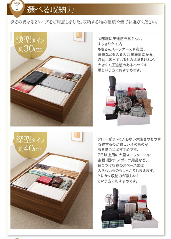 大容量収納庫付きベッド 薄型スタンダードボンネルコイルマットレス付き 深型 すのこ床板 シングル