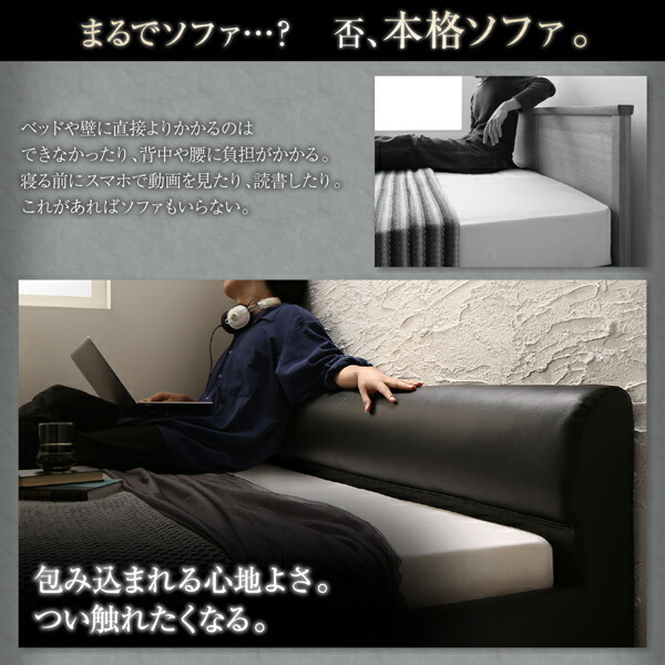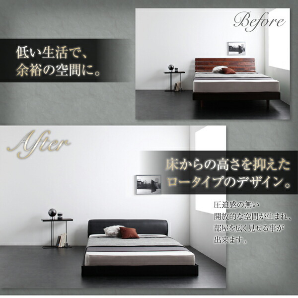 高級感のある モダンデザインレザーフロアベッド スタンダードポケットコイルマットレス付き セミダブル