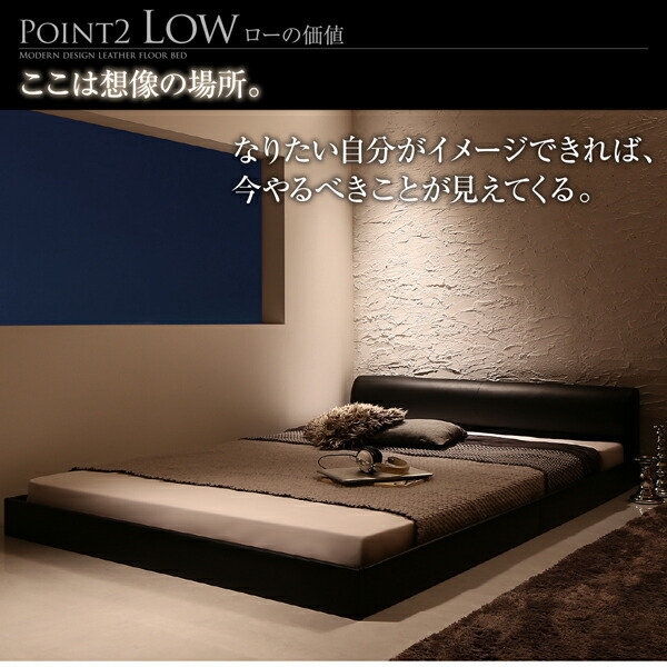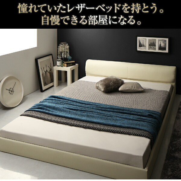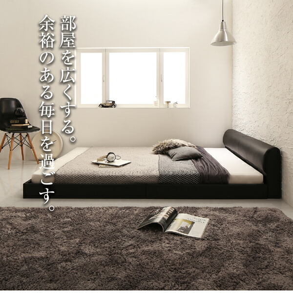 高級感のある モダンデザインレザーフロアベッド スタンダードボンネルコイルマットレス付き セミダブル 組立設置付
