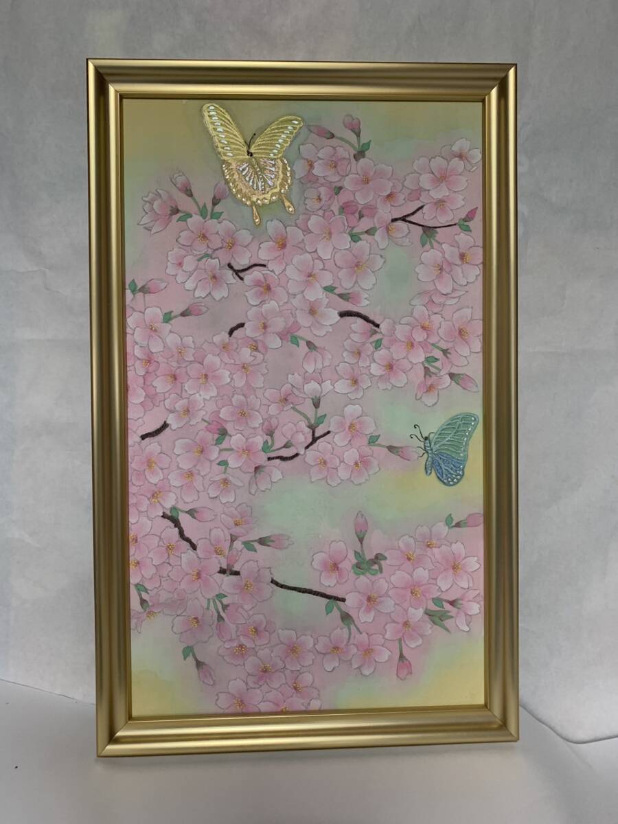 【真作】山田治則「花と蝶」絹本 額付き 日本画 上野の森美術館「日本の自然を描く展」3年連続入選 京都芸術大学卒