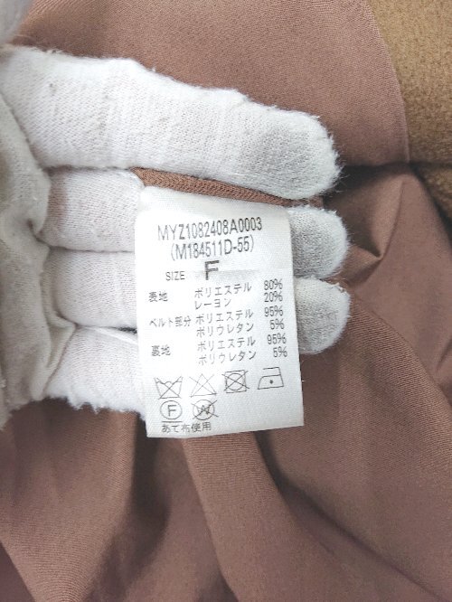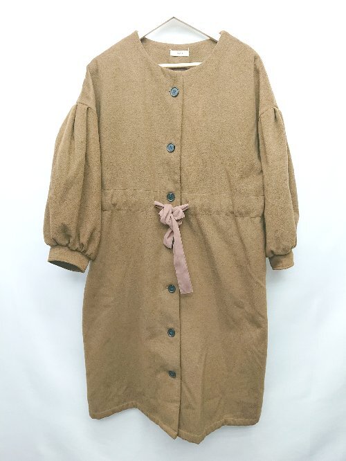 ◇ mystic ミスティック ノーカラー ウエスト切替 長袖 コート サイズF ブラウン系 レディース P