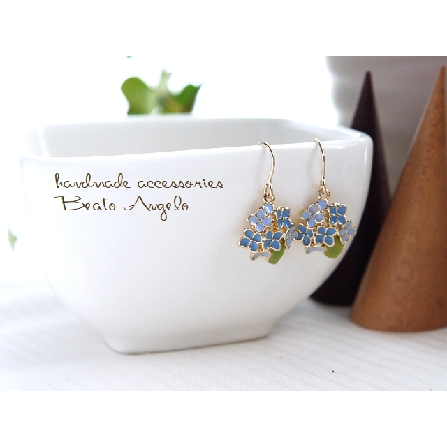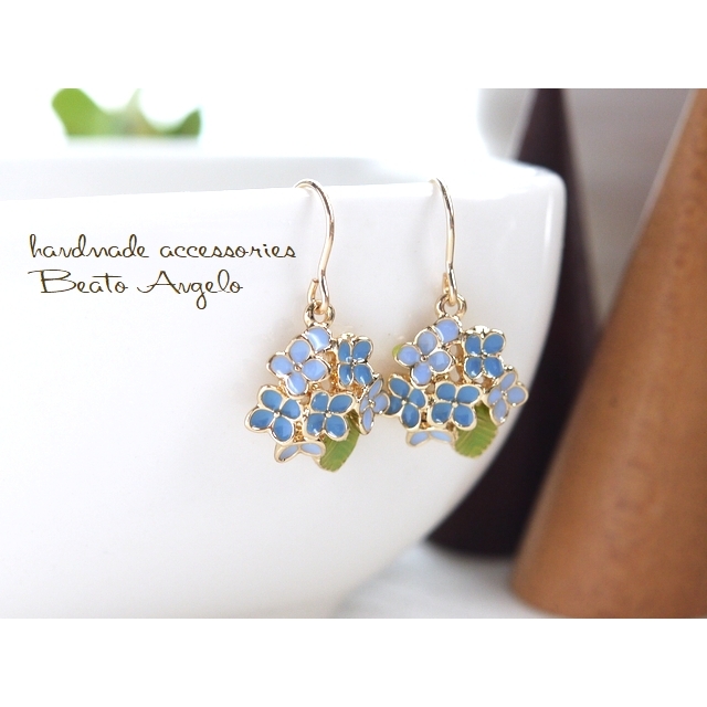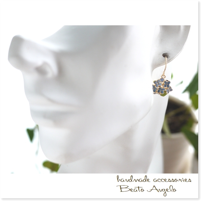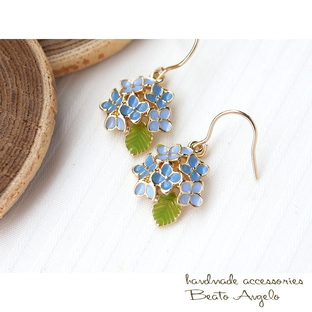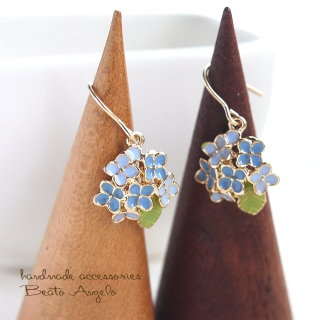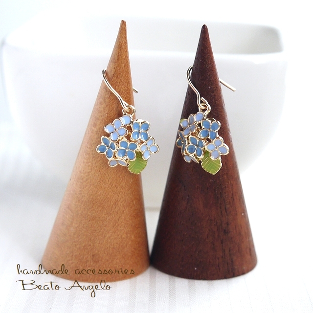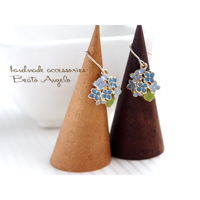 ◇◆+angelo+K14GF 紫陽花の一粒ピアス(p-005)ブルー アジサイ フラワーチャーム 花 雨