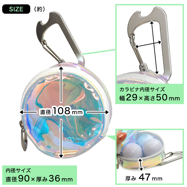 光の加減できらきら輝くオーロラカラーがとてもかわいい、便利なラウンド用品です。