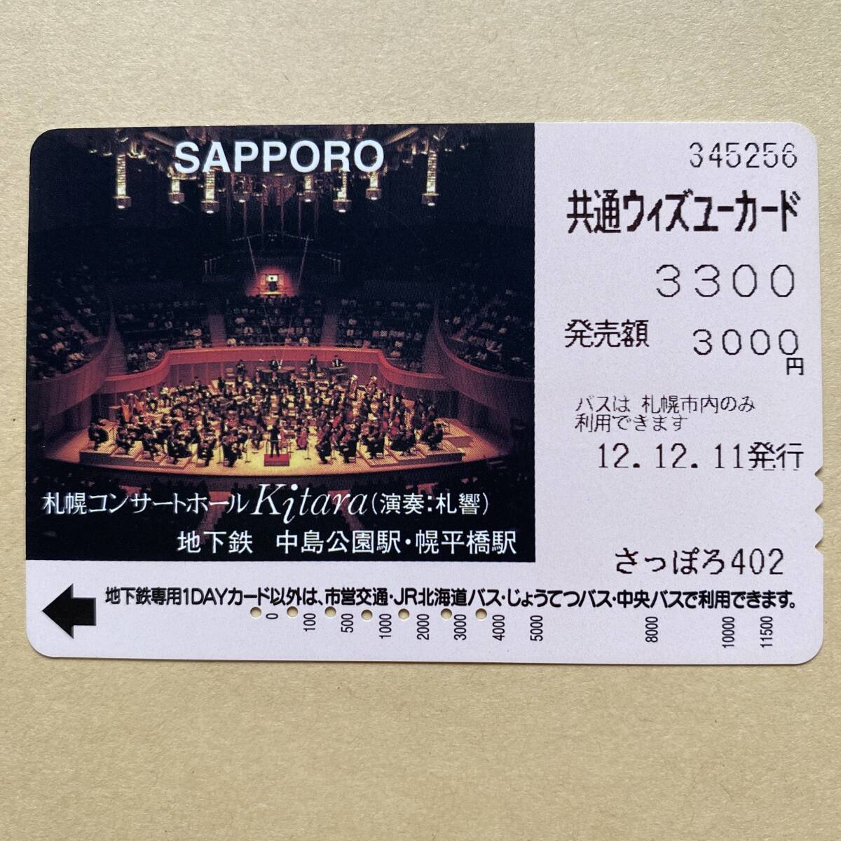 【使用済】 ウィズユーカード 札幌市交通局 札幌コンサートホール Kitara(演奏:札響)