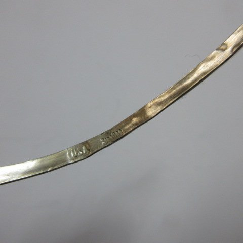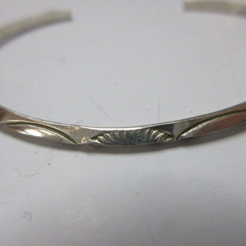 ★サイズ レディース用 シルバーだけの外周14cmくらい 重さ4,0g前後 内径55mm前後 開口部25mm前後(調節可能) 幅2、5mmくらい ★Goods アメリカ インディアン ナバホ族 新品 シルバーバングル 形はトライアングル(三角) 製作者 Ida Mc Crae 刻印 USA sterling 材質 スターリングシルバー (シルバー925と同等レベルだと御考え下さい) 写真は使いまわしです アメリカ インディアンさん 1本1本の手作り、ハンドメイドですので、 多少の変形、刻印の濃い薄い、傷等がございますことをご了承下さい どうぞよろしくお願いいたします。 #シルバーshopジョージア 他のシルバーアクセサリーはこちらです!