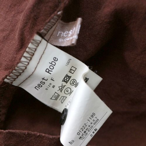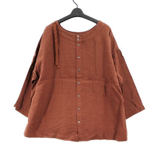 nestRobe ネストローブ 22SS リネン近江晒 ドローストリングブラウス ブラウン