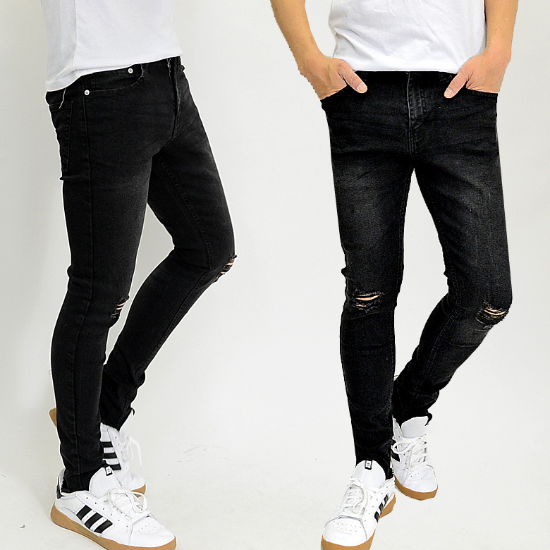 ストレッチ素材クラッシュデニム パンツ スキニーパンツ ストレッチデニムパンツ jb-92293 新品 ブラック M